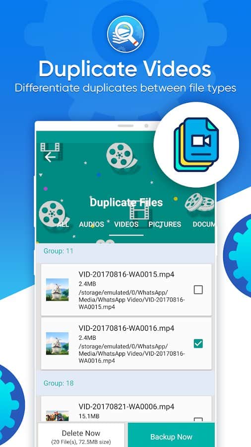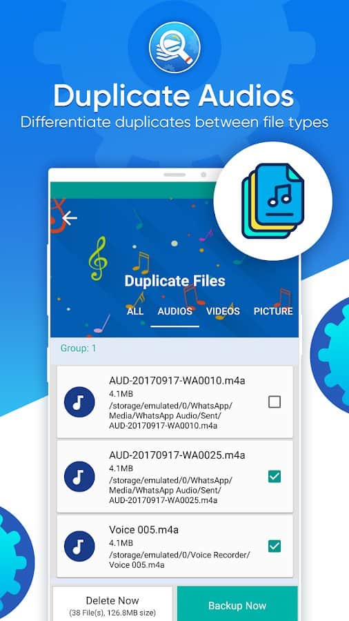 Müziğinizi, videolarınızı, fotoğraflarınızı ve belgelerinizi tarayarak gizli, kopya veya benzer olan her şeyi bulup kolayca silebilirsiniz. Bu yardımcı olmadan, telefonun iç veya dış hafızasında yer kaplayan gereksiz eşyaları bulmak oldukça zordur. Uygulamanın görünümünü geliştirmek için 2 tema mevcuttur: Klasik ve Materyal. Ayrıca, program tam 15 dile çevriliyor, bu da kullanımda popülerlik kazandırıyor.