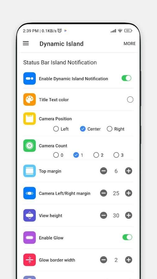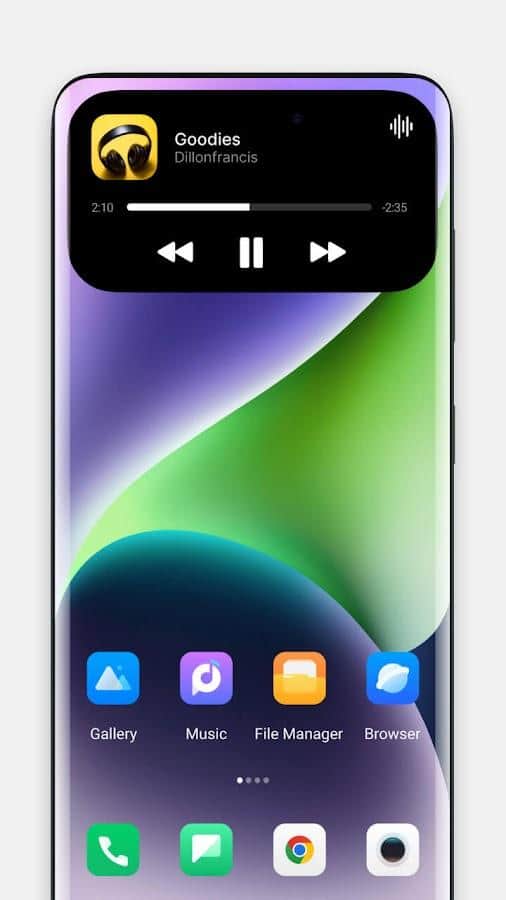 Dinamik Ada - telefonunuzun dinamik görünümü, iPhone 14 modelinin ana özelliğine benzeyen dinamik bir ada ekleyerek tamamen değişebilir! Etkileşim ayarlarını değiştirin, bu alanın gösterim ve gizlenme süresini seçin ve ana ekranda hangi uygulamaların görüntüleneceğine karar verin. Yeni işlev, müzik uygulamalarını, telefon görüşmelerini, sesli mesaj dinlemeyi, zamanlayıcıda kalan süreyi, bildirimleri ve daha fazlasını desteklemektedir.