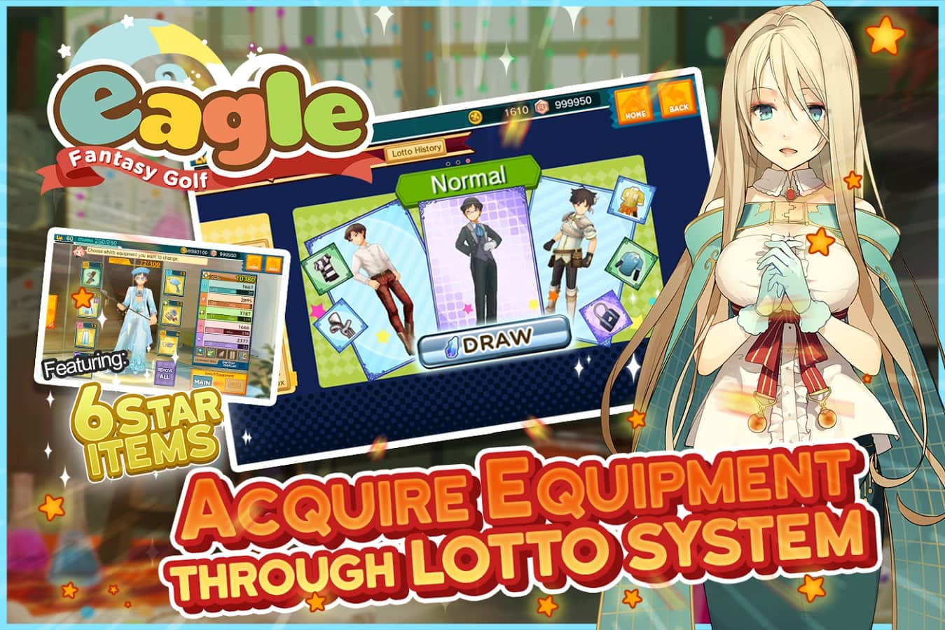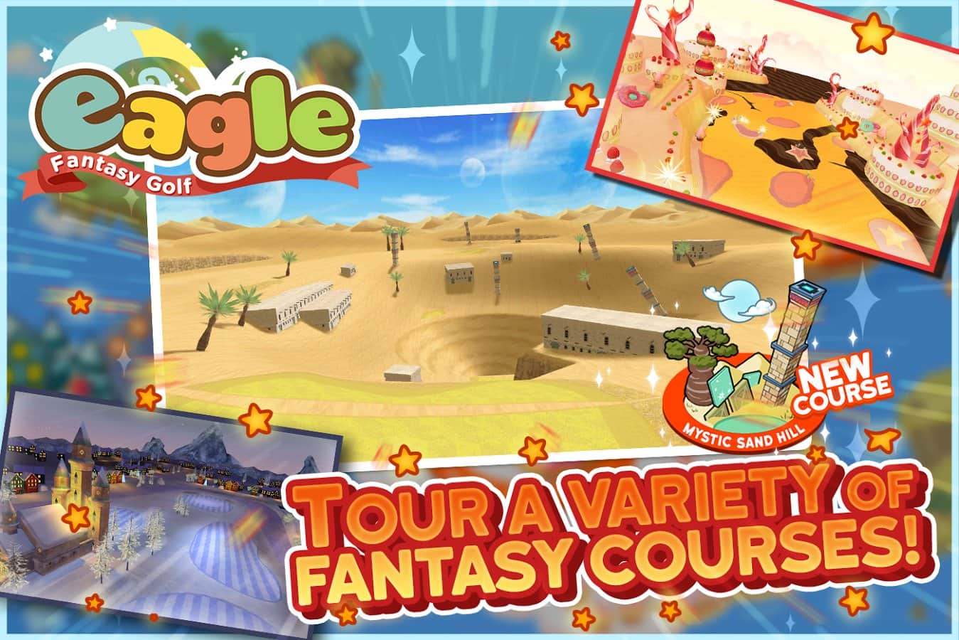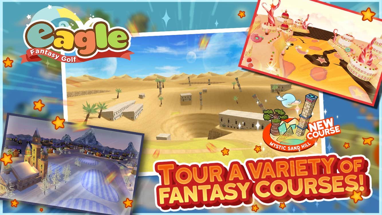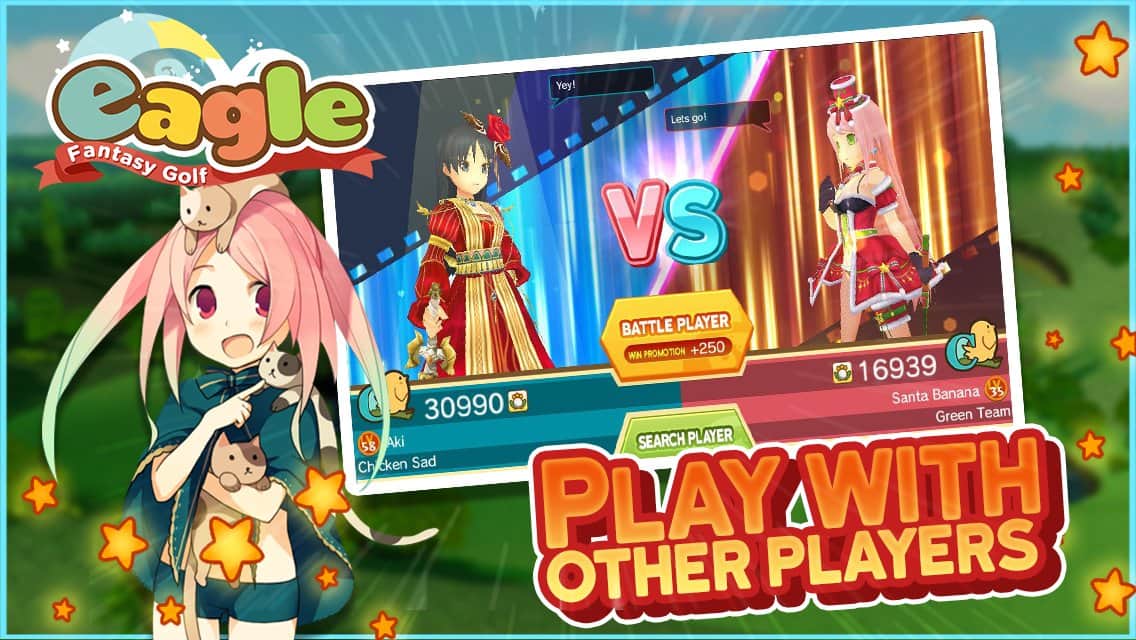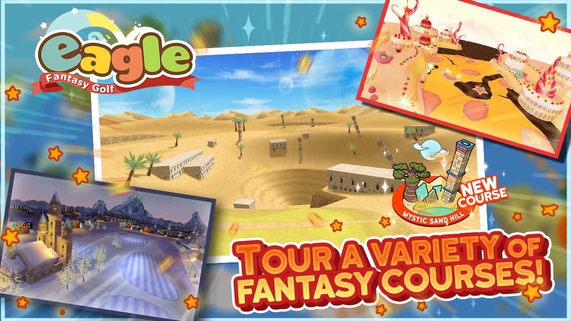 Eagle: Fantasy Golf – sevimli, arcade golf, canlı karakterler, zengin renkler ve oyundan alınan büyük bir zevk ile. Oyunda harika ve basit bir kontrol sistemi, inanılmaz ilginç bir tek oyunculu kampanya ve en az onun kadar ilginç takım etkinlikleri bulunuyor. Karakterinizi geliştirin, kıyafetlerini değiştirin, spor ekipmanınızı geliştirin ve sadece arkadaşlarınızla golf oynayın.