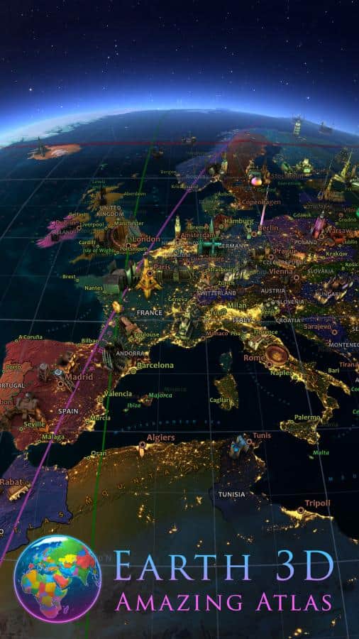 Dünya 3D - Harika Atlas / Dünya 3D - Eğlenceli Atlas - Bu uygulama sadece doğru bir 3D dünya haritası değil, aynı zamanda onun gerçek 3D modeli, fauna ve birçok diğer özelliğiyle birlikte. Bu eğlenceli etkileşimli harita, size dünya çapındaki turistik yerleri, ülkeler ve şehirler hakkında bilgi gösterebilir ve tüm bunları muhteşem ve renkli grafiklerle sunar.
