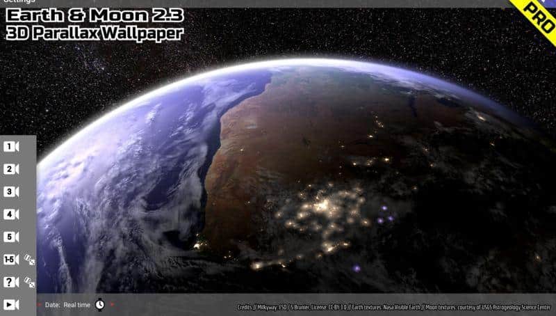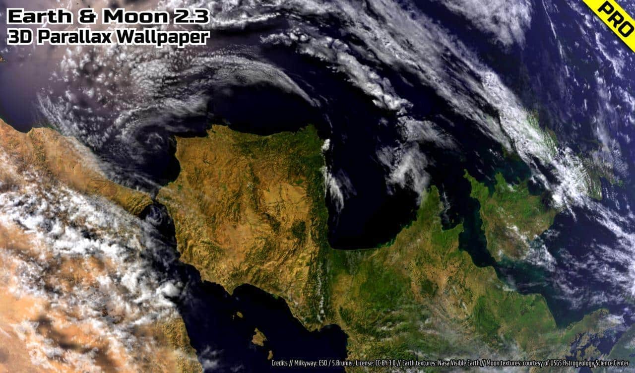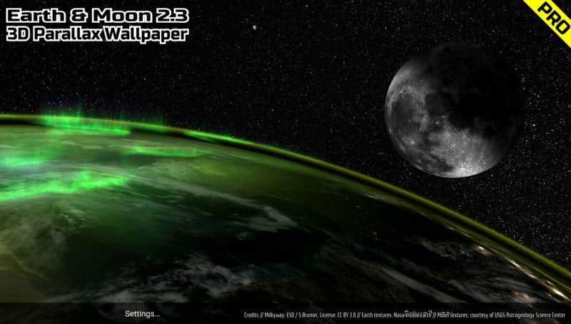 Dünya ve Ay HD Gyro 3D - Uzay temalı çok gerçekçi duvar kağıtları. Yeni bir açıdan dünyayı görebileceksiniz. Cihazınızı hareket ettirdikçe gezegene olan bakış açınız değişecek. Ayrıca gezegeni hareket ettirebilir veya bakışınızı aya çevirebilirsiniz. Görüntüyü büyüttüğünüzde dağları bile net bir şekilde görebilirsiniz. Duvar kağıtları mükemmel bir şekilde yapılmış olup, fazla batarya tüketmez. Çok ilginç ve etkileyici efektler, bu canlı duvar kağıtlarını sevmenizi sağlayacak.