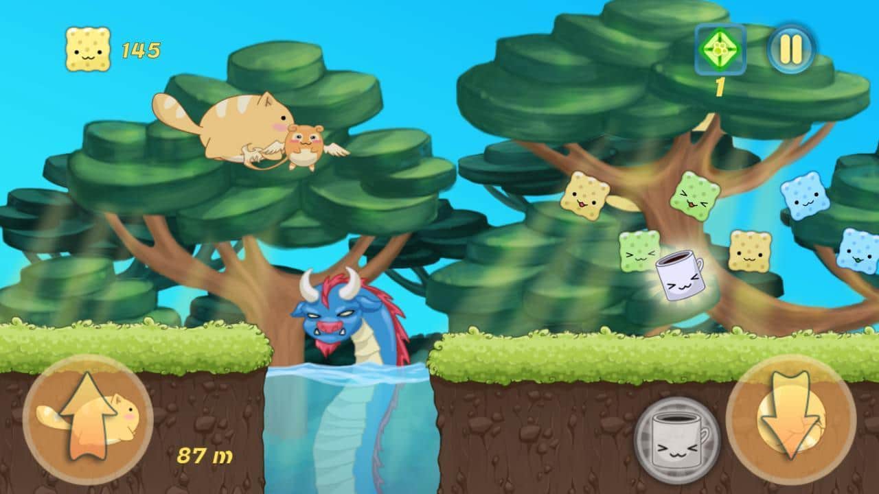 Ye ve Kaç: Kedinin Maceraları – Android için harika bir koşu oyunudur, burada Pirozhok isimli kediye kurabiye toplamasında yardımcı olacaksınız. Bu oyunda kahramanımız, yolda karşısına çıkan tüm engelleri aşarak ileriye koşacak. Önünde acımasız etobur bitkiler, deniz canavarı, mantarlar ve tehlikeli bir orman onu bekliyor. Koşun, zıplayın ve yolda karşılaşacağınız tüm engelleri aşarken, mümkün olduğunca çok kurabiye toplayın, bu size yeni kediler açma veya oyundaki rekorunuzu kırma imkanı verecek.