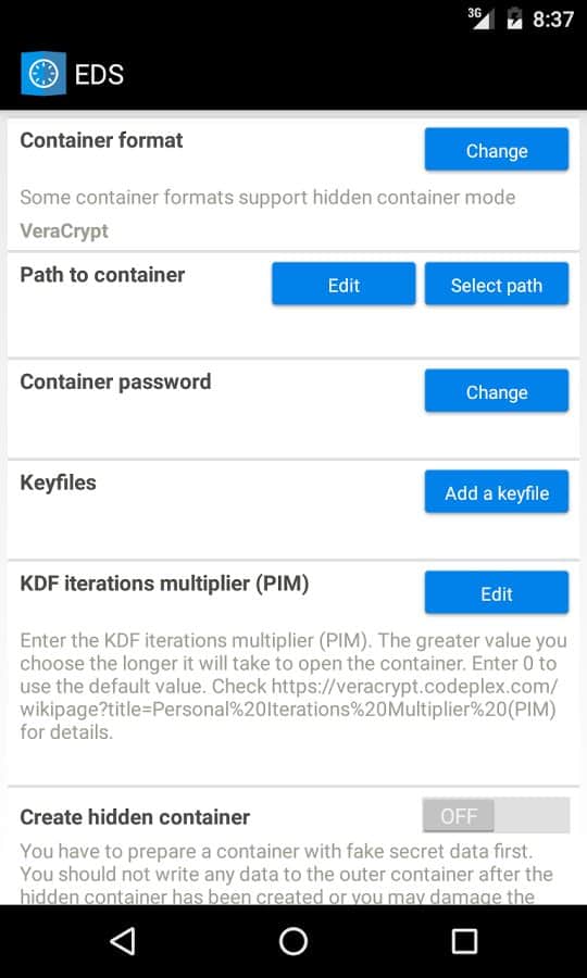 EDS (Şifreli Veri Deposu) geliştirici sovworks tarafından. Verilerinizi meraklı gözlerden güvenle saklamanız gerekenler için harika bir Android programı. EDS, verilerinizi saklamak için şifreli bir konteyner kullanır, AES-256 algoritması ile şifreleme ve birçok başka yöntem kullanır.
