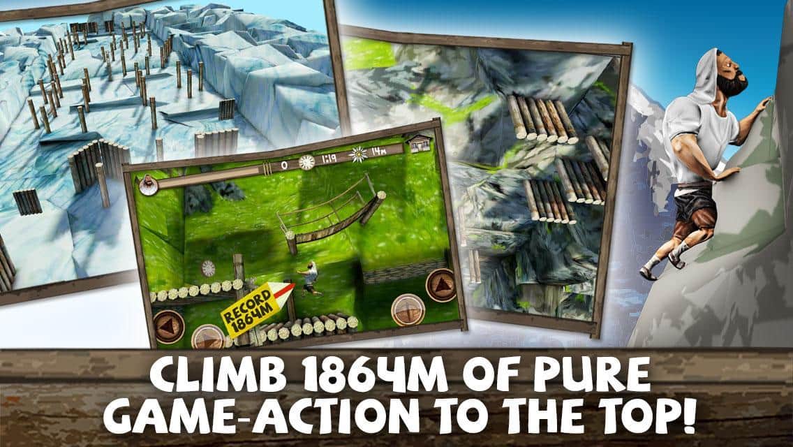Eiger Kuzey Duvarı – Android için heyecan verici bir oyun, burada yeteneklerinize ve iyi tepkilerinize meydan okuyabilirsiniz. Bu oyunda ana karakteri kontrol edeceksiniz, ona 1864 kilometre yolu aşarak dağın zirvesine çıkma görevi verildi. Yeteneklerinizi gerçek anlamda test edin ve bu zirveyi fethedin. Çeşitli platformlarda, kütüklerden oluşan zıplamalar yaparak daha da yükseğe çıkın. Yolda karşınıza çıkan düşmanları yayla yok edin ve hız ve zaman rekorunuzu kırın. Yolda ek süre şeklinde bonuslar toplayın. Elinizden geleni gösterin ve bu oyundaki diğer oyunculara meydan okuyun.