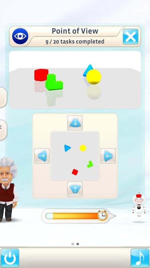 Einstein Zihin Eğitimi, sizin için kişisel bir zihin antrenörüdür. Bu aşamada beynin gelişimini belirleyecek birkaç test ve eğitimden geçmeniz gerekecek. İlginç olan, ayarlanabilir zorluk sistemi - ne kadar çok hata yaparsanız, o kadar zor olduğunu gösterir, bu nedenle sonraki seviyeler daha kolay olacaktır ve tam tersine, görevleri ne kadar temiz geçerseniz, sonraki görevler o kadar zor olacaktır! Ayrıca, birkaç profil oluşturabilir ve aynı cihazda ailenizle veya arkadaşlarınızla antrenman yapabilirsiniz. Ayrıca, size görevlerin özünü saf Rusça ile anlatacak Einstein asistanınız da var. Ve mücadele etmeyi sevenler için de bir yer ayrılmıştır - dünya çapındaki diğer oyuncularla savaşabilir, unvanlar ve rütbeler kazanabilir ve rekorlar tablosunda yer alabilirsiniz! Genel olarak, oyun geniş bir kullanıcı grubuna hitap etmektedir!
