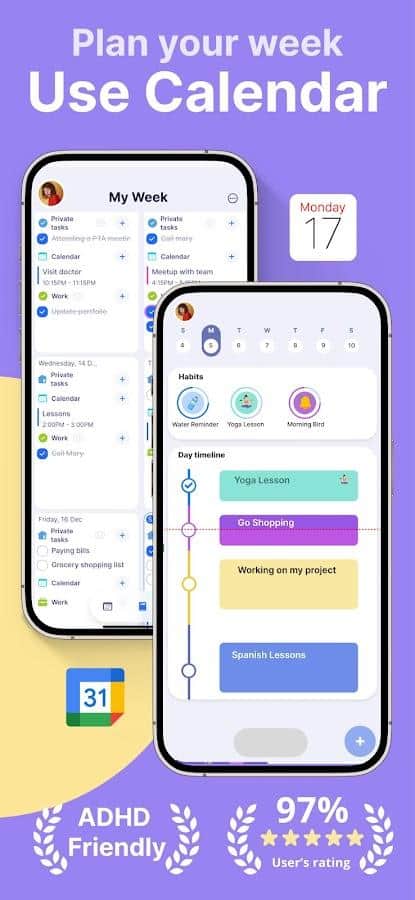 Günlük planlama organizatörü: Brite (Brite: Günlük Planlayıcı, Yapılacaklar Listesi) — bir dizi programı birleştirerek, kullanıcıların etkileşimini en üst düzeye çıkarmak ve en konforlu hale getirmek amacıyla yaratılmış bir uygulamadır. Kullanıcılar, görev yöneticisi, alışkanlık takipçisi, listeler ve tekrarlayan hatırlatmalar, bütçe hesaplama ve daha önemli hedefler için finans tasarrufu ve koruma sağlayan bir sistem alırlar.