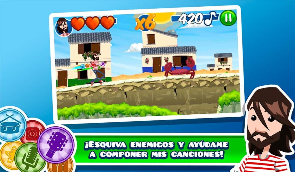 El Pescao Skate - David Otero, yeni müzik albümüyle İspanya'ya geri döndü. Yeni albümüyle birlikte, müziğini getirmek için adalarda kaykay yaparak dolaşıyor. Tehlikelerle dolu seviyelerde ve single'larda onunla birlikte ilerleyin, aletler ve notalar toplayın. Ayrıca, yeni şarkıların kendi versiyonlarını oluşturabilir, şarkı söyleyebilir veya sevdiğiniz enstrümanı çalabilirsiniz. Bu çok eğlenceli oyunu kaçırmayın ve mutlaka oynayın. Pişman olmayacaksınız!