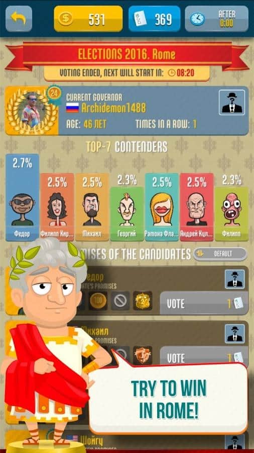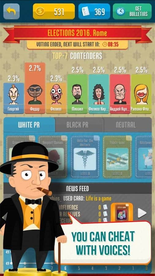 Siyasi figürler her seçmen tarafından tartışılır, mutlaka birine oy vermek gerekmez. Bu, günlük sorunlarla ilgili neredeyse her konuşmanın sevilen konusudur. Ancak Seçim Simülatörü, oyuncunun başka bir tarafta olmasına ve halkın sevgilisi gibi hissetmesine olanak tanır. Her şey, en uzak köyde bile yarışı kazanacak güce sahip olmayan küçük ve bilinmeyen bir partiden başlar, ancak durumu değiştirmek mümkündür. Tüm bilinen PR tekniklerini uygulamak ve kendi siyasi gücünü geliştirerek seçmenler arasında popüler hale getirmek gerekecek.