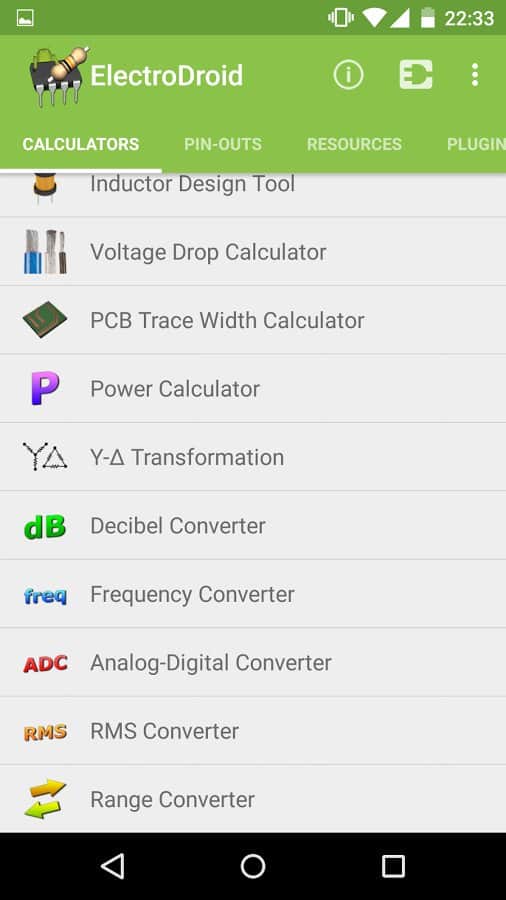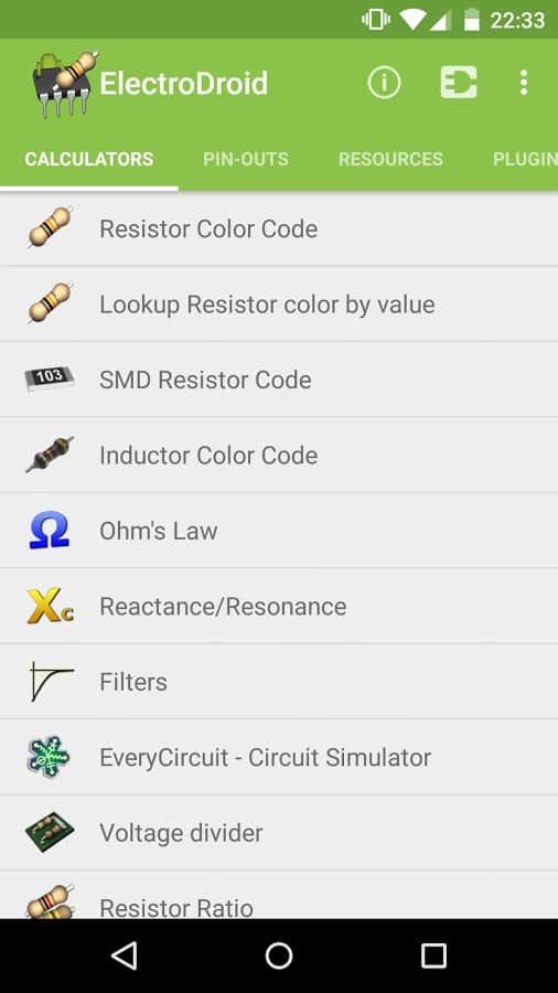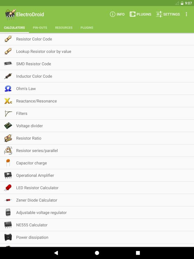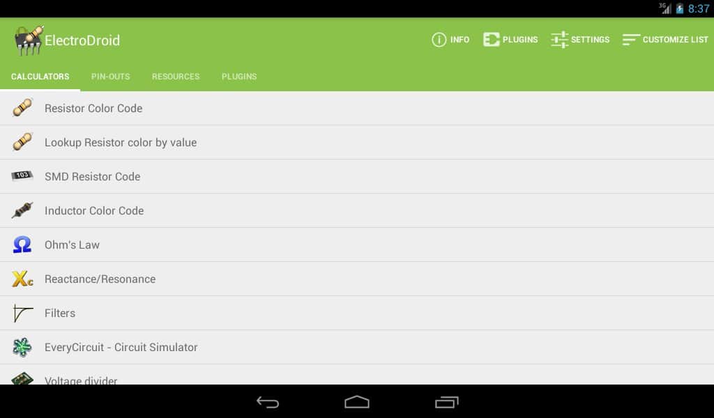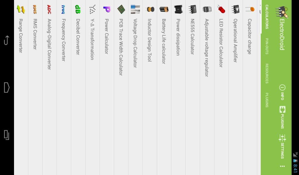 ElectroDroid Pro - Elektronik geliştiricileri için kapsamlı bir araç ve rehber setine sahip bir uygulamadır. Bu uygulama, radyo meraklıları için en iyi cep rehberidir. Kullanıcı dostu arayüz sayesinde aradığınız her şeye sezgisel olarak ulaşabilirsiniz. ElectroDroid ile elektronik devrelerin inşası için birkaç hesaplama yapabilirsiniz.