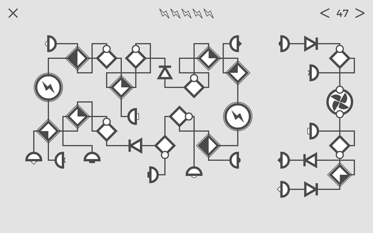electronia - minimalistik tarzda hazırlanmış, ilgi çekici bir bulmaca oyunu. Seçilen format, hem oynanış hem de tasarım açısından oyunun genel sunumuyla mükemmel bir uyum sağlıyor. Bu nedenle, göreviniz son derece basit: bir ampulü yakmak için elektrik şebekesini kurmak. Başlangıç aşamalarında her şey oldukça basit görünüyor, ancak ilerledikçe, 50'den fazla seviye ile zorluk artacak ve bazı şemalar sizden sadece zekanızı değil, aynı zamanda bilginizi de gerektirecek. Oyun süreci, sakin ve düşünceli bir tarzı öngörüyor, bu da hem zihninizi çalıştırmanıza hem de mükemmel bir şekilde dinlenmenize olanak tanıyacak; hoş görsel stil de buna yardımcı olacak.