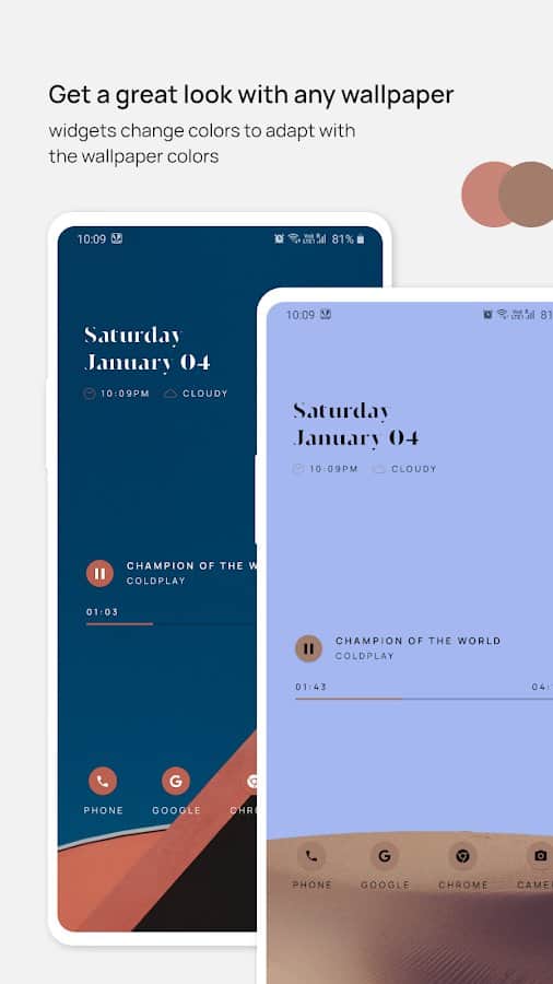 Yüklenen duvar kağıtları ile birlikte widget'ların renklerini otomatik olarak ayarlama imkanı.
