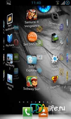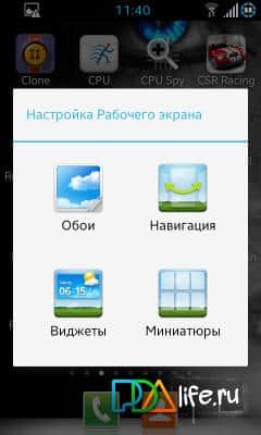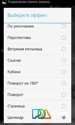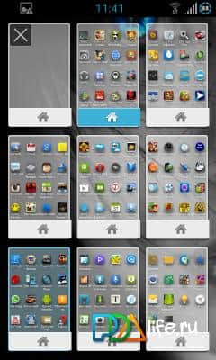 - Ekrandaki boş alanın optimize edilmesi: ekranlar arasında ilginç geçiş animasyonları seçme (6'dan fazla tür) ve ayrıca tüm ana ekranları aynı anda küçük resimler olarak görüntüleme imkanı