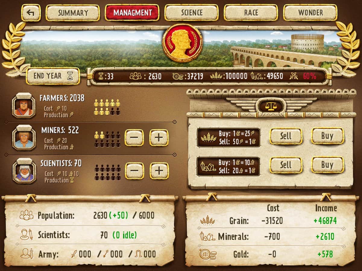 İmparatorluk Yöneticisi: Altın - Android için bir strateji oyunu, burada geniş bir imparatorluğu yöneteceksiniz. Savaştığınız ulusu seçin - bu Vikingler, Mısırlılar veya Romalılar olabilir. Göreviniz güçlü bir imparatorluk kurmak ve bu oyunda zafere götürmektir. Devasa bir savaşçı ordusu toplayın ve yeni toprakları fethedin. İnşaat, bilimle ilgilenin ve imparatorluğunuzu yenilmez kılmak için yeni teknolojileri öğrenin. Şehirlerinizi geliştirin, değerli kaynaklar çıkarın ve ordunuza yeni savaşçılar alın. Seferler düzenleyin ve komşularınızın topraklarına saldırarak onları geri alın ve kendinize mal edin. Müttefiklerinizle diplomatik ve ticari ilişkiler kurun ve imparatorluğunuzu geliştirin.