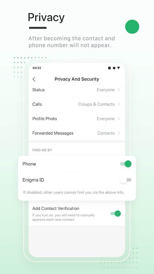 Enigma Messenger - Dünyanın dört bir yanındaki diğer insanlarla tek bir yerde iletişim kurun! Bu uygulama, yeni tanıdıklarınızla metin veya sesli mesajlar aracılığıyla iletişim kurmanıza, dosya veya video göndermenize, telefon galerinizden fotoğraflar paylaşmanıza ve sohbetlerinizi aynı anda 6 cihazda senkronize etmenize olanak tanır. Kamera açık veya kapalı olarak sohbet etmek için görüntülü aramalar yapın ve gizliliğinizi koruyun, başkalarının kişisel bilgilerinizi öğrenmesinden endişe etmeyin. Gruplar oluşturun veya bire bir sohbet edin, seçim her zaman sizin.