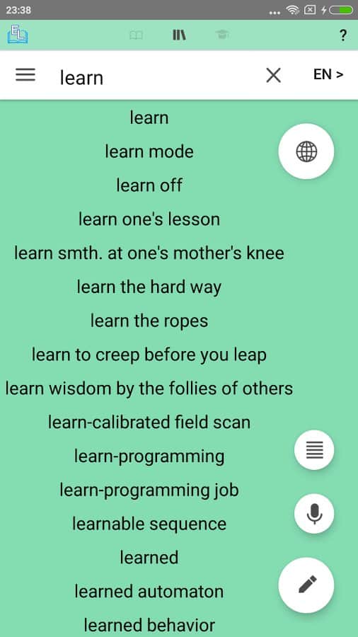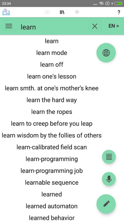 EnLearner - Her zaman yabancı dilleri öğrenmeyi mi hayal ettiniz? Ama bunun için fırsat bulamadınız. Artık bu basit, bu uygulama ile internete bile ihtiyacınız yok, çünkü çevrimdışı modda çalışıyor. Prensibi oldukça basit, kartlar üzerine kuruludur. Size bir kelime verilir ve siz onu çevirmeye çalışırsınız, ardından uygulama doğru mu yanlış mı olduğunuzu gösterir. Kelimelerin yanı sıra, transkripsiyonu da gösterecektir, bu da her zaman doğru bir şekilde telaffuz edeceğiniz anlamına gelir. Çok basit ve az yer kaplar, ancak daha ileri düzey kullanıcılar için tasarlandı.