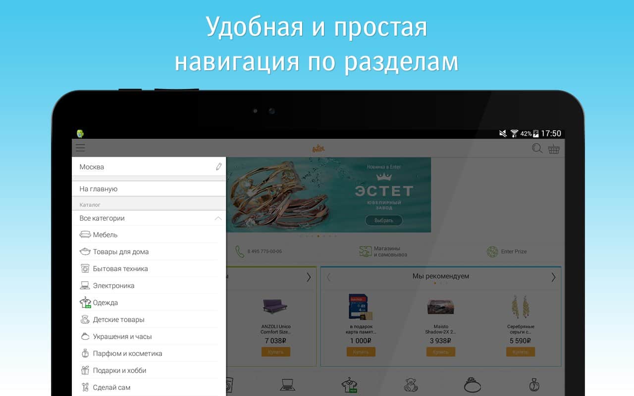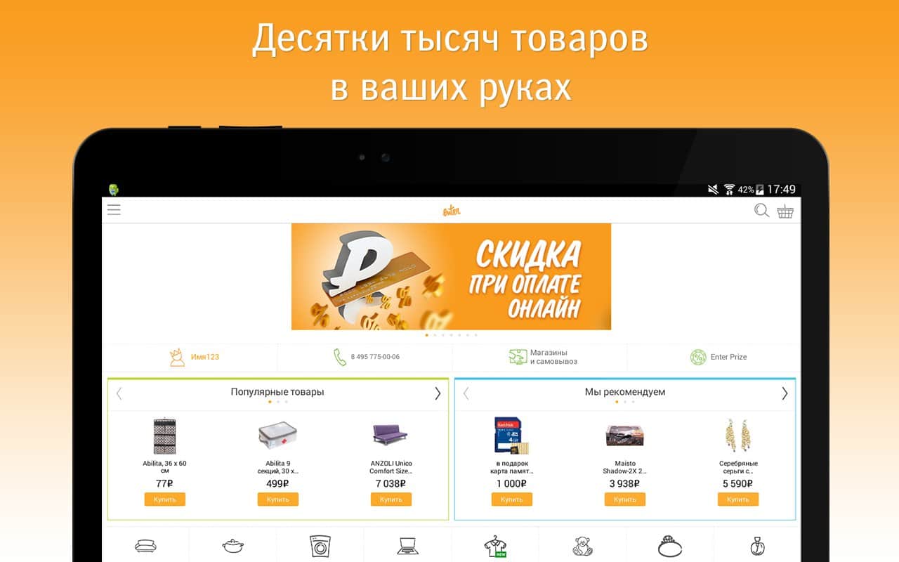 Android için Enter - çeşitli kategorilerde her zevke uygun geniş ürün yelpazesi sunan bir internet mağazasıdır. Mobilya, beyaz eşya, elektronik, kahve, aksesuarlar, evcil hayvan ürünleri ve parfüm gibi ürünlerin yanı sıra her hafta 100'den fazla yeni ürün eklenmektedir. Android için Enter'ın 7 gün içinde herhangi bir nedenle ürün iadesini ve 14 gün içinde herhangi bir nedenle ürün değişimini garanti ettiğini belirtmek gerekir. Ayrıca, maksimum konfor için siparişinizi herhangi bir yere kurye ile teslim alarak veya herhangi bir fiziksel mağazadan alarak edinebilirsiniz. İyi alışverişler ve başarılı işlemler dileriz!