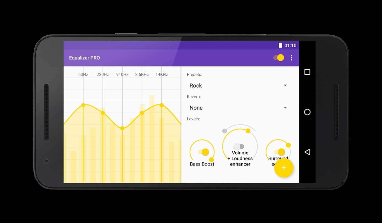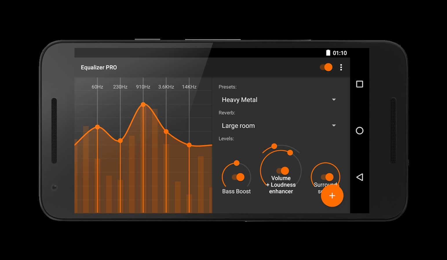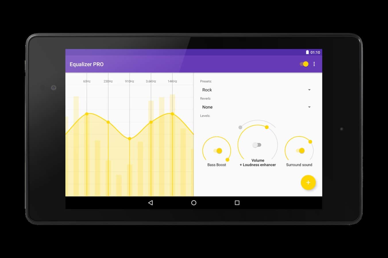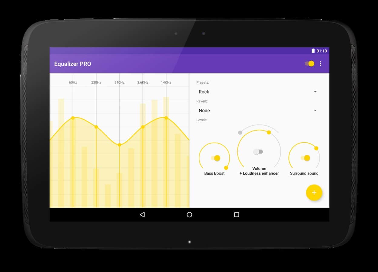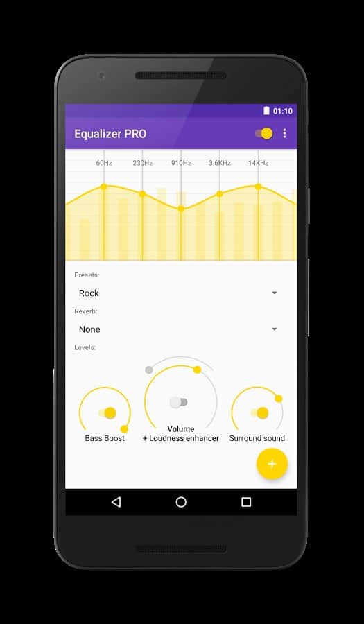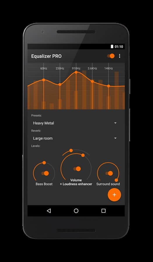 Ekolayzer - Bass Boost - Bu uygulama müziği yüksek sesle dinlemeyi sevenler için mükemmel bir seçimdir. Ancak ses artırma, bu uygulamanın temel işlevi değildir. Bu uygulama, müzik dinlemenin keyfini çıkarmanız için tasarlanmıştır; bunu yapmak için ton, denge gibi bazı parametreleri ayarlayabilirsiniz. Bunu, farklı müzik türleri için belirli bir şablon seçerek otomatik olarak yapabilirsiniz. Ancak isterseniz tüm parametreleri manuel olarak da ayarlayabilirsiniz.