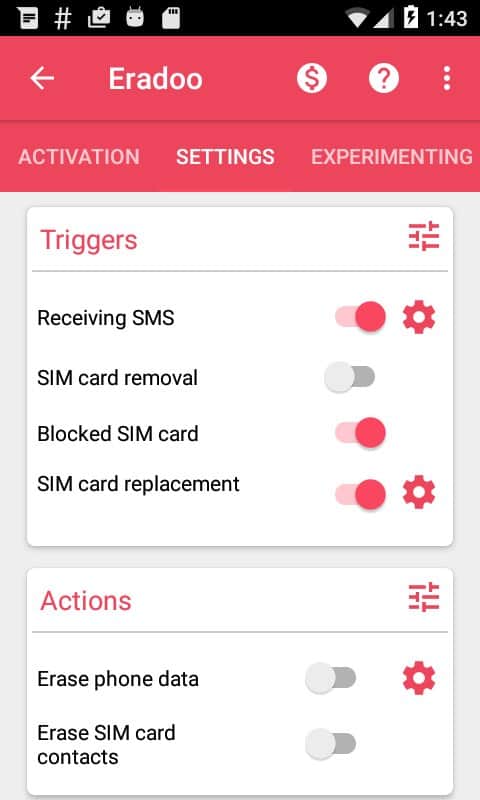 Eradoo, akıllı telefonunuz kaybolduğunda veya çalındığında kişisel verilerinizi koruyabilir. Tüm kişisel bilgiler, ağa bağlı olmaksızın otomatik olarak telefondan silinir. Bunun için SMS gönderimi, değiştirme, kilitleme veya SIM kart slotunda olmama gibi yöntemler mevcuttur. Bu özelliklere erişim için cihaz yöneticisinden izin gereklidir. Verilerinizin gizliliği güvenilir bir koruma altındadır.