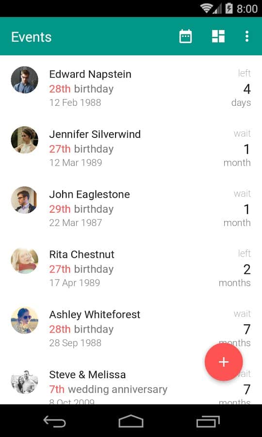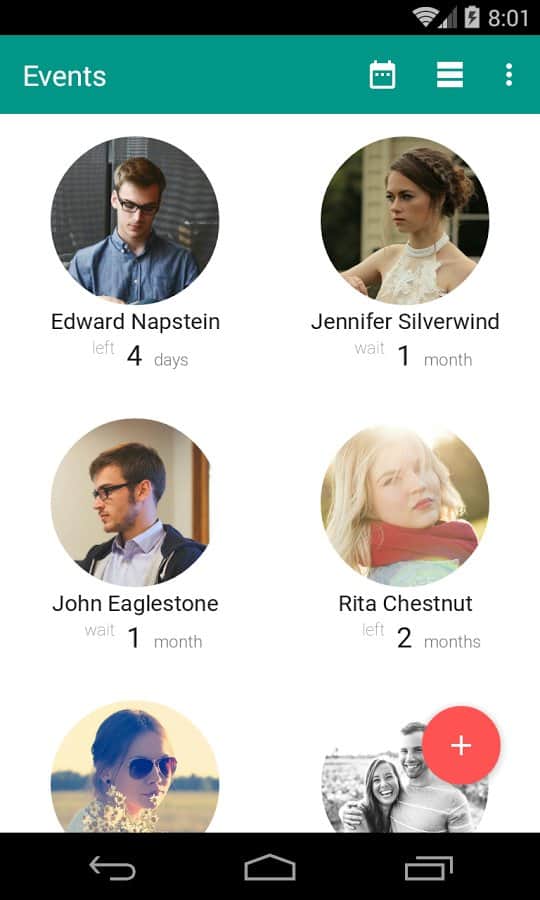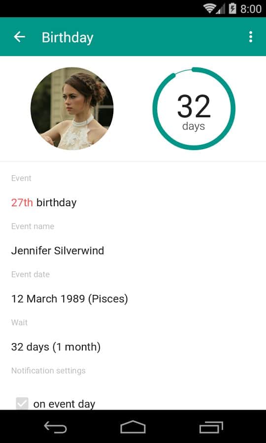 Etkinlikler - Artık her etkinliğin tarihini hatırlamak zorunda değilsiniz, her şey daha kolay hale geldi, sizin için önemli olan tüm tarihleri tek bir uygulamada saklayın. Sadece ekleyin, uygulama size gerekli anda hatırlatacak. Hem hediye almayı, hem de tebrik sözlerini önceden düşünmeyi unutmayın. İçinde gereksiz bir şey yok, sadece ana işlevini yerine getirmek için yapılmış. Bu nedenle içinde rahatsız edici reklamlar yok.