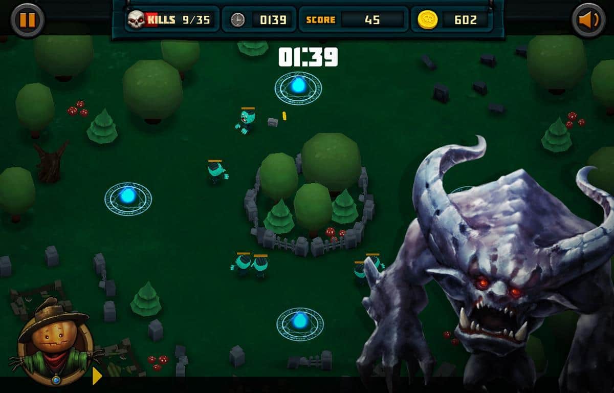 Kötü Avcısı – yaklaşan Cadılar Bayramı sayesinde tüm canavarlar, zombiler ve diğer kötü varlıklar saklandıkları yerlerden çıkıp, balkabaklarını çalmaya çalışıyor. Göreviniz, korkuluk Skeri'ye tüm düşmanları yok etmesine ve bahçenize girmelerine izin vermemektir. Ekrana dokunarak düşmanlara kamçınızla vurun ve belirgin özelliklere sahip tüm kötü varlıkları yok edin: hayaletler bir süre kaybolabilir, zombiler çok yavaş hareket ederken, demonlar hızlı hareket eder ama kısa boyları nedeniyle balkabağını bahçeden hızlı bir şekilde alamazlar. Düşmanlarla savaşmak için cephaneliğinizde çeşitli bonuslar bulunmaktadır: bombalar, tuzaklar, mayınlar ve dondurma, bunları zor durumlarda kullanın. Farklı görevleri tamamlayın ve bonus satın almak için harcayabileceğiniz başarılar kazanın.
