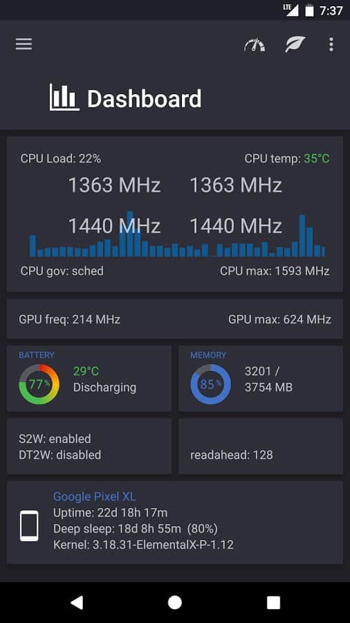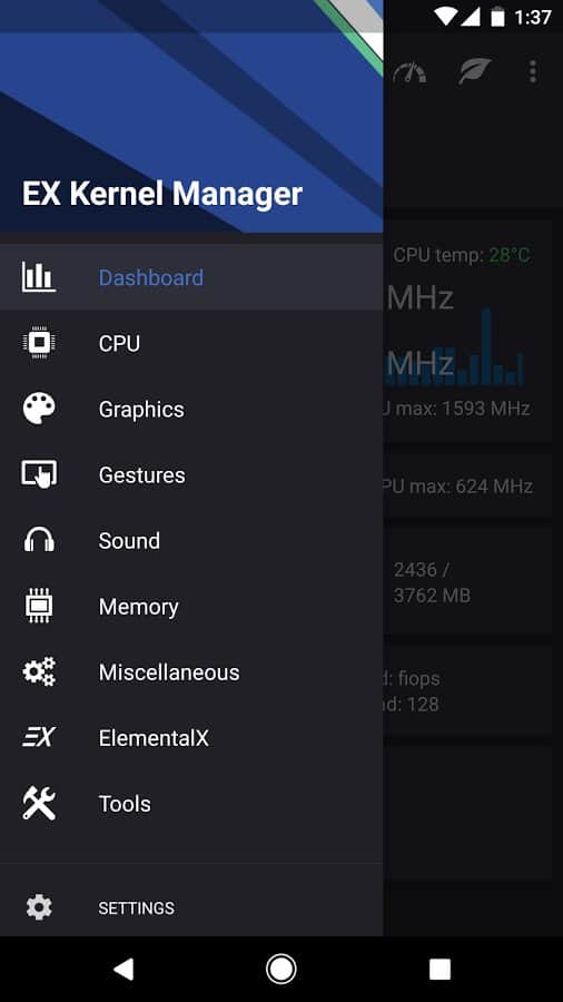 EX Kernel Manager - Gerçekten de eşsiz bir uygulamadır. Kök erişimi olmayanlar için cihazınız hakkında bilgi toplayacak, tüm donanım bileşenlerinin gücünü ve ısınma sıcaklıklarını gösterecek ve birçok diğer özellik hakkında bilgi verecektir. Kök erişimi olanlar içinse, bu, akıllı telefonunuzu yönetmek için benzersiz bir araçtır; burada normal kullanıcıların erişemediği sistem ayarlarını değiştirebilirsiniz. Burada pil ayarlarından ekranınızdaki renk oranlarını değiştirmeye kadar her şeyi değiştirebilirsiniz.