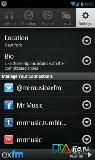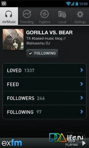 exfm müzik - Extension Entertainment Inc. tarafından geliştirilen Android cihazınızda türler, sanatçılar, albümler ve daha fazlası arasında konforlu bir şekilde müzik dinlemenizi sağlayan bir uygulamadır. exfm müzik'in özellikleri arasında Facebook, Twitter, Tumblr ve Last.fm ile scrobbling için entegrasyon imkanı bulunmaktadır.