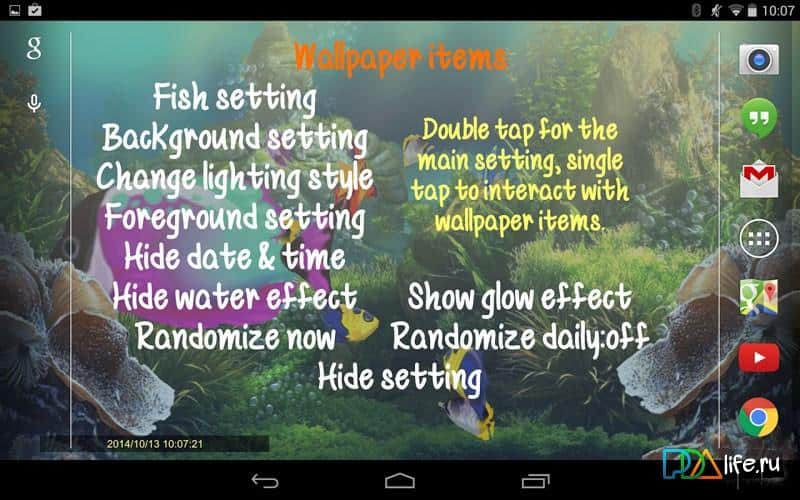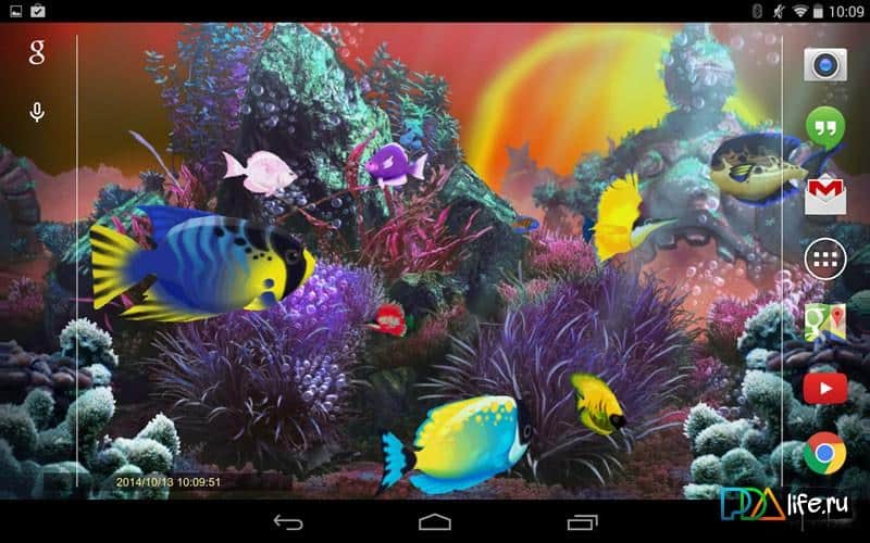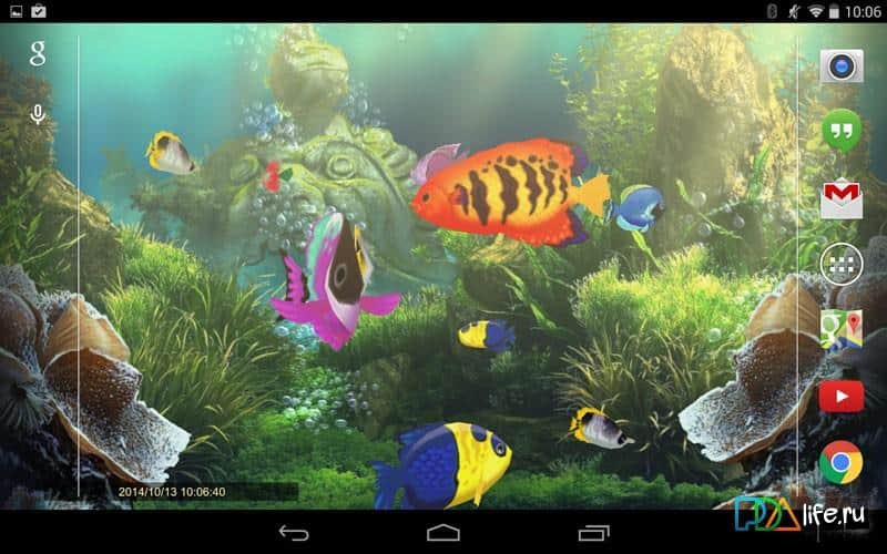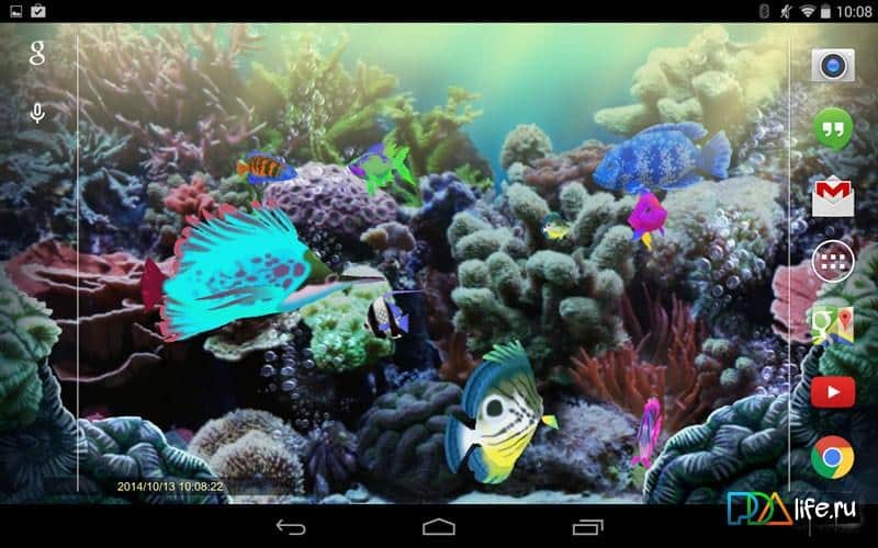 Egzotik Akvaryum LWP Ultimate - Android cihaz kullanıcıları için kaliteli akvaryum canlı duvar kağıtları. Akvaryum oldukça gerçekçi görünüyor. Uygulamanın büyük bir ayar seçenekleri yelpazesi, akvaryumu kendi zevkinize göre doldurmanıza olanak tanır. Ayrıca, duvar kağıtlarının cihazınızın bataryasını harcamada oldukça nazik olduğunu belirtmek gerekir. İndirin!