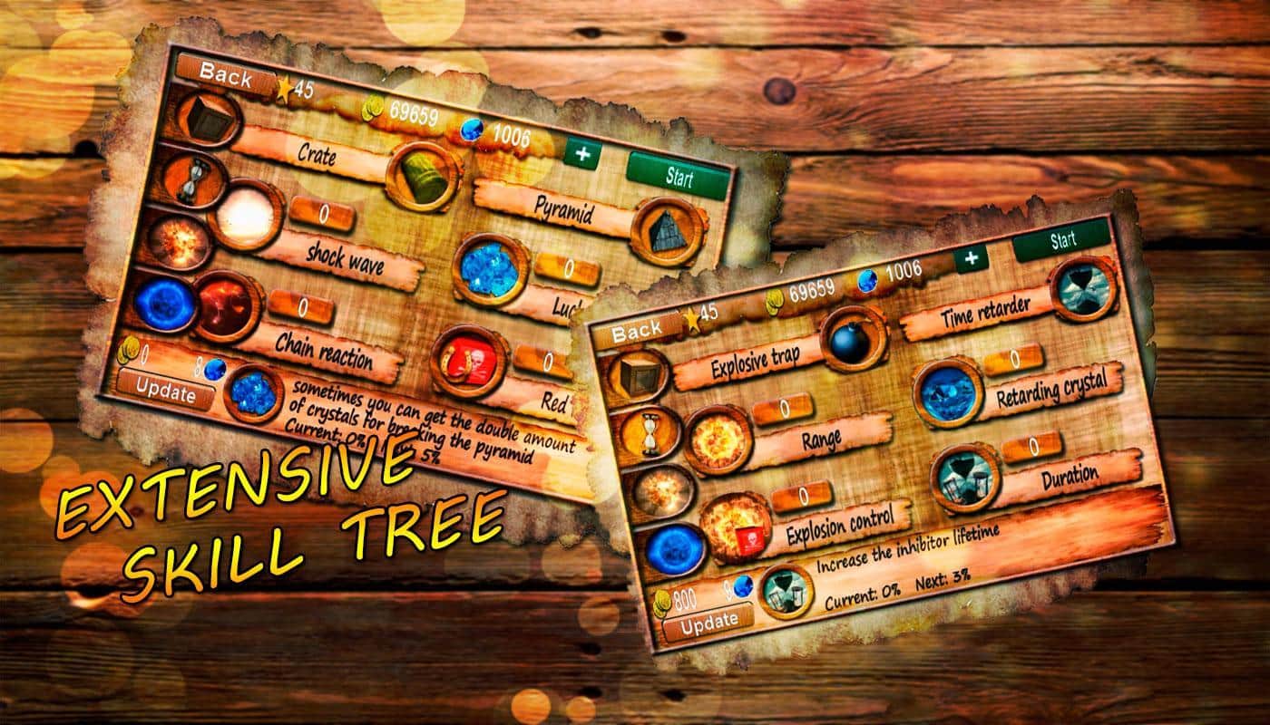 Patlat! - telefonunuzda kutuları patlatarak zaman geçirebileceğiniz bir android oyunudur. Bu, gönlünüzce eğlenebileceğiniz ve mükemmel oyun mekaniğini deneyimleyebileceğiniz eğlenceli bir oyundur. Farklı seviyelerde ilerleyin ve en basitinden son derece zor olana kadar kendinize uygun bir zorluk seviyesi seçin. Oyunda kutuları patlatmanız gerekiyor, ancak bunu daha hızlı yapabilmek için meteorlar oluşturun ve nesneleri kendinize çekin, ayrıca daha iyi bir etki için zamanı yavaşlatın. Telefonunuzda bir kıyamet yaratın ve patlama dalgasıyla tüm nesneleri yok edin.