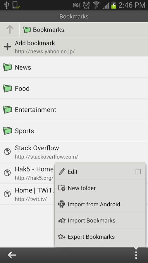 - Varsayılan tarayıcıdan yer imlerini içe aktarın.