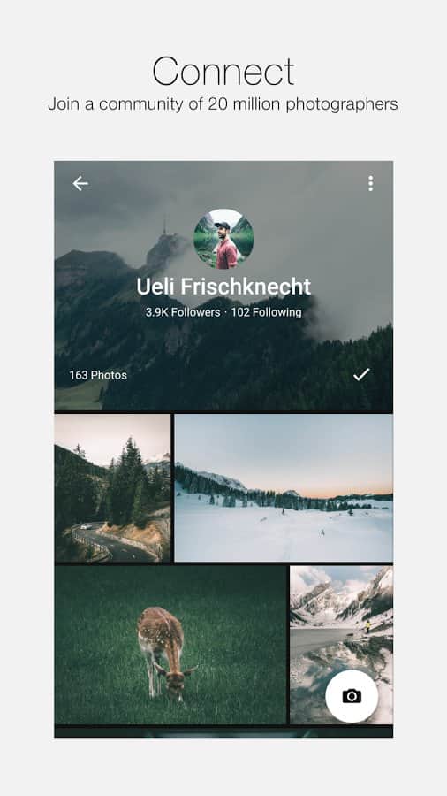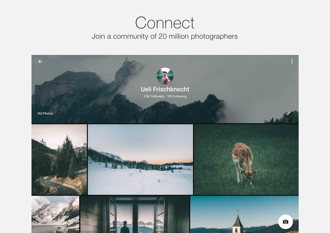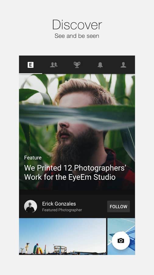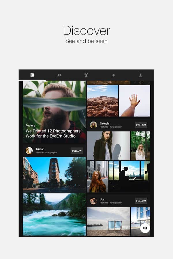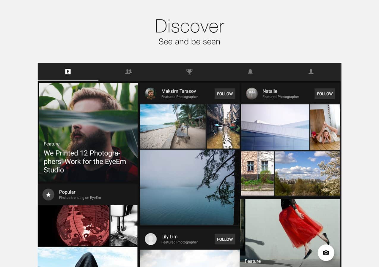 Eğer fotoğraflarınızı paylaşmak istiyorsanız fakat Instagram'a karşı kalıcı bir alerjiniz varsa, EyeEm'e göz atabilirsiniz. Uygulama kalitesi açısından bahsedilen benzerine hiç de geri kalmıyor, ilginç filtrelere ve fotoğraf düzenleme için en çok talep edilen birkaç araca sahip, ayrıca servisin geniş ve çeşitli bir kitleye sahip olması da hoş bir sürpriz; herkes ilgi alanlarına göre takip edecek hesaplar bulabilir. Dahası, akıllı arama sistemi sadece insanları değil, aynı zamanda ayrı albümleri, mekan fotoğraflarını ve benzeri şeyleri de takip etmenizi sağlıyor.