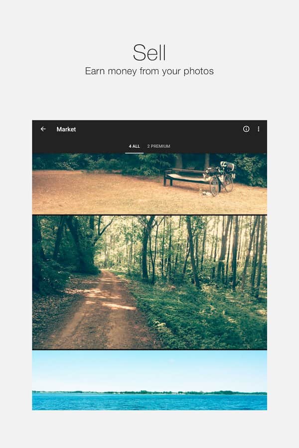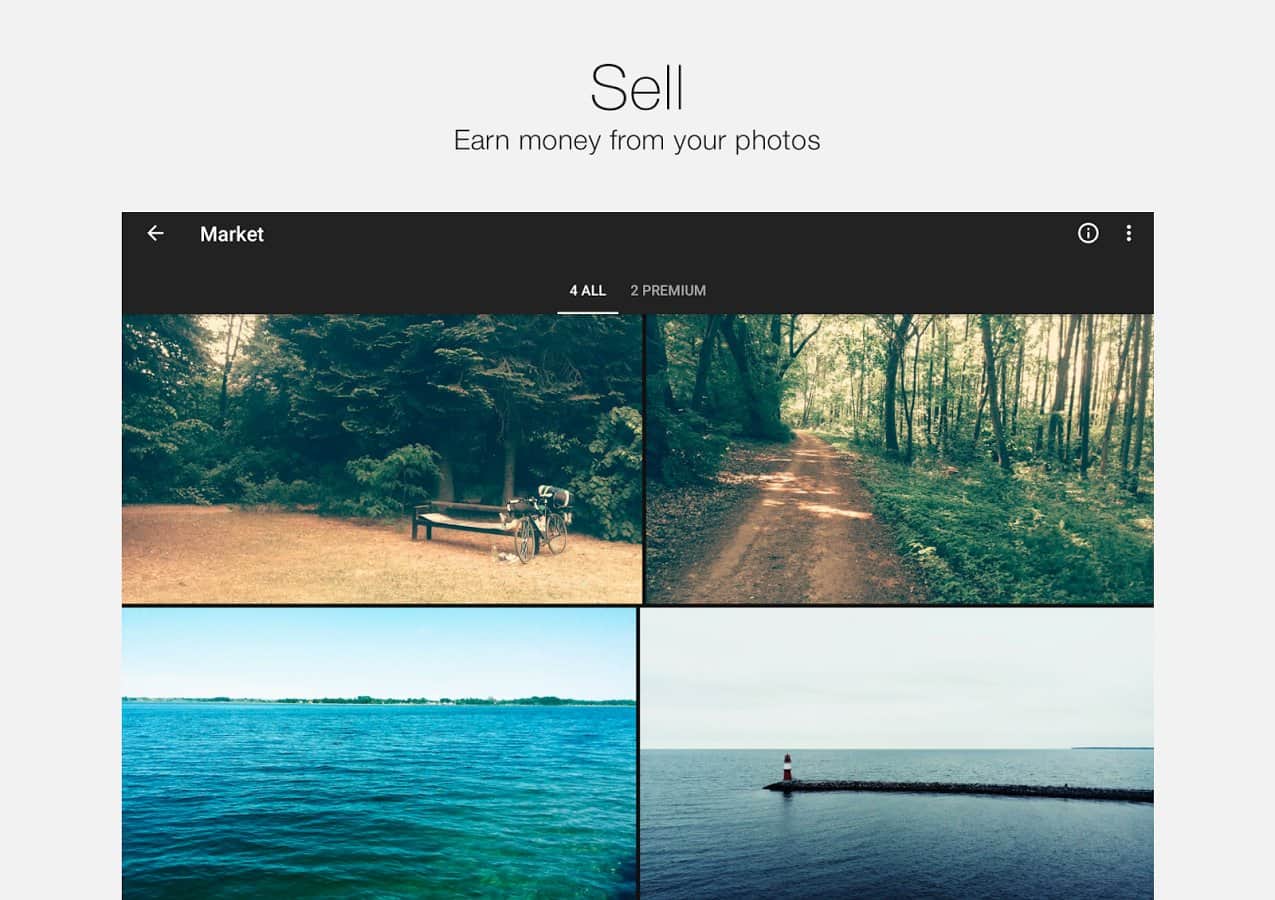 Servisin en önemli özelliği, fotoğraflarınızı özel bir pazaryerinde satma imkanıdır, bu nedenle eğer fotoğrafçılıkta başarılı olduğunuzu düşünüyorsanız, hobinizi paraya çevirmeyi deneyebilirsiniz.