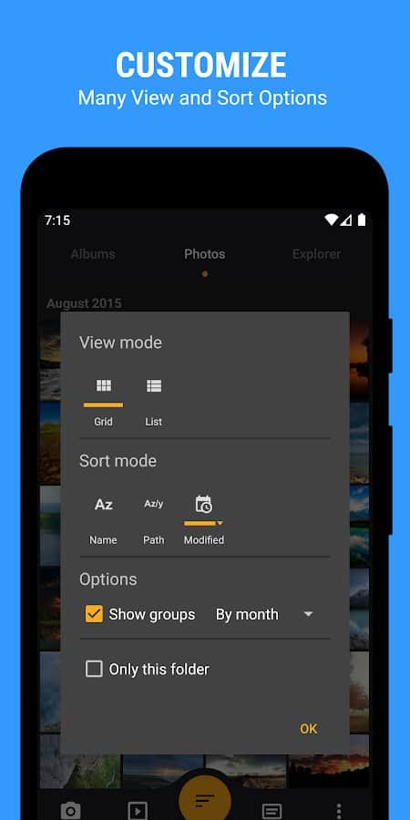 EZ Galeri - Fotoğraflarınızı yönetin, böylece diğer dosyaların arasında kaybolmasınlar! Kendi galerinizin düzenini sağlamak için uygun klasörler oluşturun ve genel yapıyı ayarlayın. Herhangi bir görüntüyü hızlıca gözden geçirin, slayt gösterisini başlatın, birkaç hareketle tüm küçük resimleri inceleyin, fotoğraf aramasını istediğiniz gibi sıralayın ve başkalarının görmemesi gereken fotoğraf klasörlerini gizleyin. Galeride sadece fotoğraflar değil, aynı zamanda videolar, animasyonlar ve diğerleri de saklanabilir.