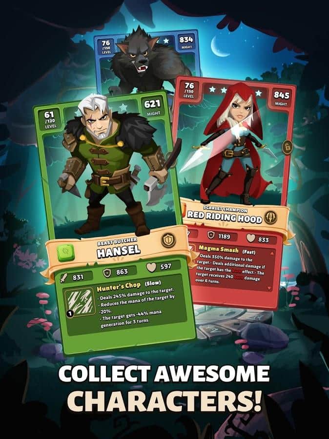 Masal Savaşları: Epik Bulmaca RPG - Büyülü orman sadece iyilikle dolu değildir, birçok masalda anlatıldığı gibi, derinliklerinde korkunç bir kötülük gizlidir. Farklı karakterlerden oluşan ekibinizi ve fantastik yeteneklerinizi yönetme becerinizle onu yenin. Harika kahramanların kartlarından oluşan bir koleksiyon toplayın ve ardından karmaşık bulmacaları çözmeye başlayın! Ne yazık ki, yetenekleri zamanla azalıyor, bu yüzden onları düzenli olarak geliştirmeli ve iyileştirmelisiniz. Eğer basit düşmanlar artık sizi durduramazsa, onların komutanlarıyla karşılaşın ve iyiliğin neler yapabileceğini gösterin!
