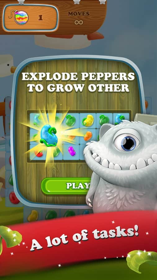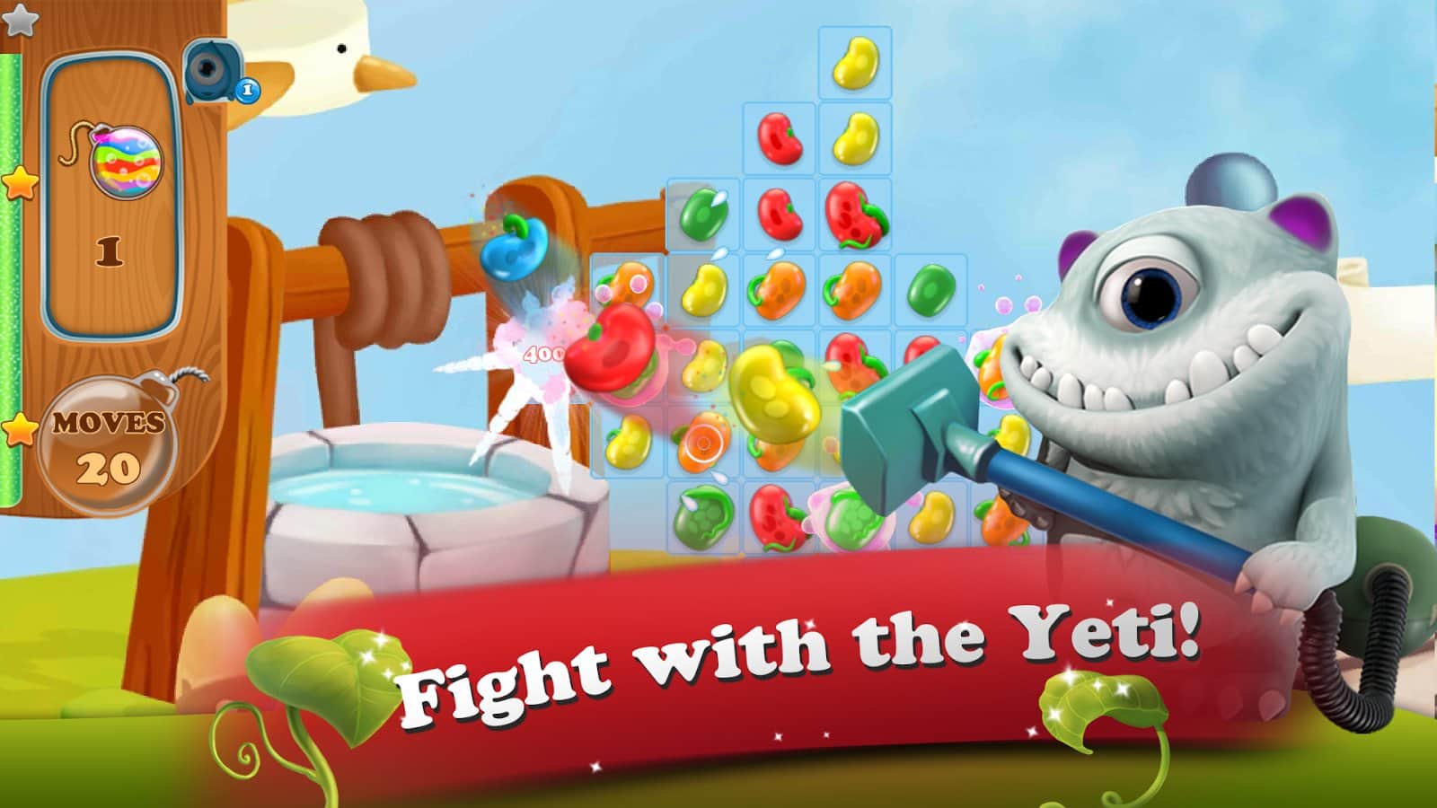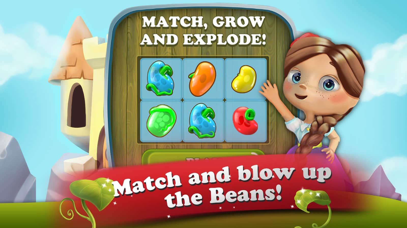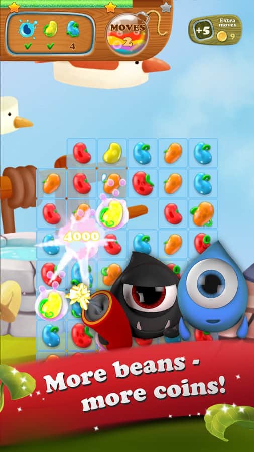 Masal Kahramanı: 3 Eşleştir Bulmaca - Android için bir oyun, üçlü eşleştirme türünde, burada şövalyeye kötü yetiniden prensesi kurtarmasında yardım edeceksiniz. Bu oyundaki ana göreviniz, mümkün olduğunca uzun fasulye sıraları oluşturmak ve fasulye sapında daha yükseğe tırmanarak yetinin kalesine ulaşmak ve onu yok etmek. Size verilen tüm görevleri ve misyonları yerine getirin ve tüm seviyeleri, bunu yaparken mümkün olduğunca az hamle kullanarak geçin. Bu oyunda tüm mantığınızı, zeka ve harika tepkilerinizi kullanarak çeşitli bonuslar kazanın. Mümkün olduğunca fazla fasulye patlatın ve prensesin yardımına koşun.