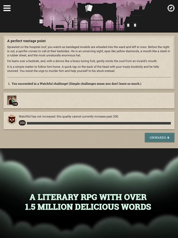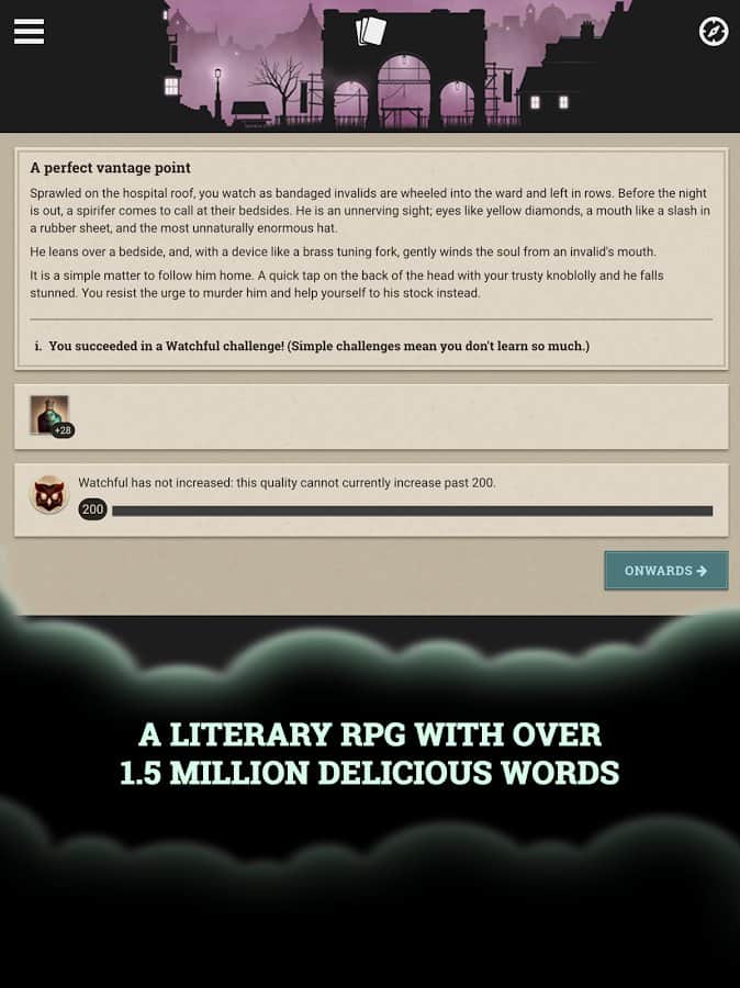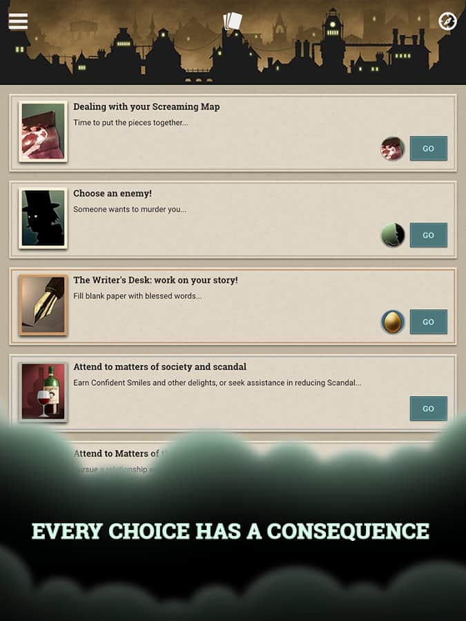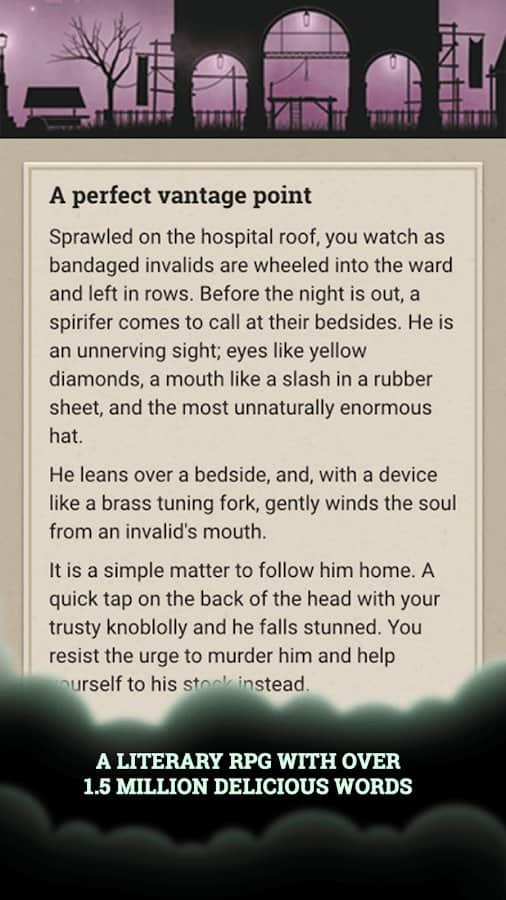 Fallen London adıyla çıkan oyunun orijinal versiyonu, öncelikle bir tarayıcı eklentisi olarak yayınlandı ve birkaç gün içinde dikkate değer bir izleyici kitlesi edindi. Daha sonra iOS ve PC için bir versiyonu çıktı ve şimdi Android versiyonunun çıkma zamanı geldi. Oyun, gotik bir atmosferle alternatif bir viktorya Londrası olan "Düşmüş Londra"da geçiyor. Oyun, yarasa orduları şehri ele geçirdiği andan itibaren gelişmeye başlıyor ve size tam bir özgürlük sunuluyor; dünyayı keşfedin, görevleri yerine getirin. Oyun mekaniği, klasik metin tabanlı macera oyunlarının tarzında gerçekleştirilmiştir.