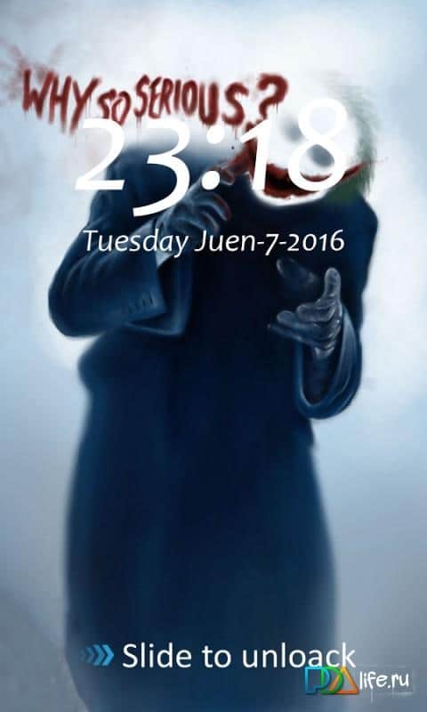 Şık Kilit Ekranı Joker - Karanlık Şövalye film serisinin tutkulu hayranları için bir ekran kilidi. Bu sadece harika bir ekran kilidi değil, aynı zamanda bir sayı kodu ile basit bir giriş sistemine sahip. Ayrıca, ana kötü karakterin çeşitli resimleri, fotoğrafları ve hatta sanat eserleri ile dolu benzersiz kilit ekranları elde edeceksiniz ve onun sonsuz kanlı gülümsemesi. Uygulamayı ayarlamak da zor olmayacak, çünkü çoğu modern launcher ile destekleniyor.