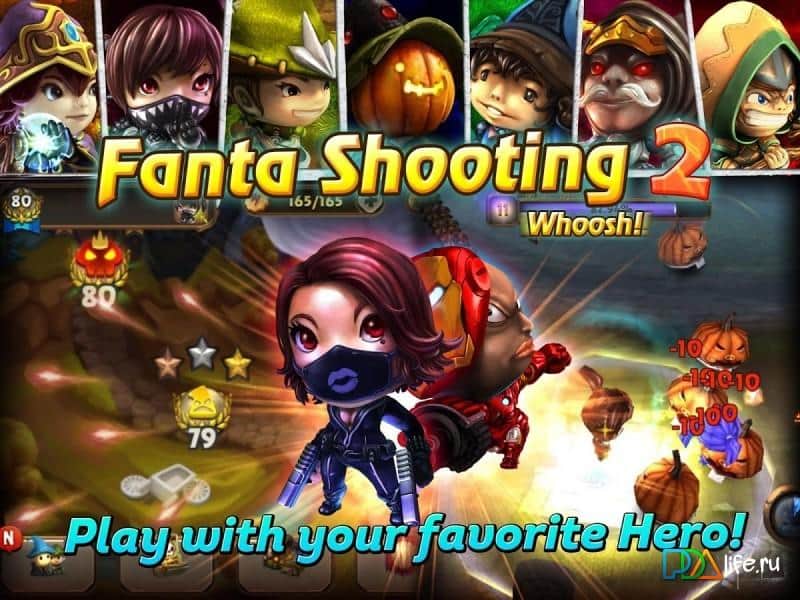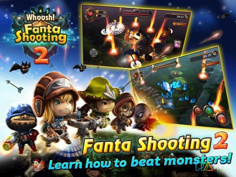 Fantashooting2-Whoosh! – küçük bir kadın büyücü, ona açıkça düşmanca yaklaşan çeşitli varlıklardan kaçmaya çalışıyor. Biz de ona bu konuda yardımcı olacağız. Elinizde birkaç tür büyü ve canavarlardan kolayca kaçmanızı sağlayan çevikliğiniz var. Oyunda birkaç yetenek öğrenecek ve en uzak, en tehlikeli mağaralarda bulunacaksınız.