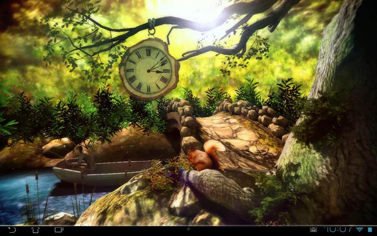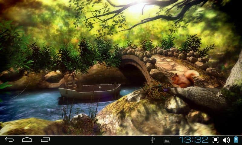 Fantastik Orman 3D - Android için harika canlı 3D duvar kağıtları. İnanılmaz renkli bir orman, köprü ve nehir ile her telefonda etkileyici görünmektedir. Gündüz ve gece değişimi, balık tutan sakin bir balıkçı, saatler ve diğer hoş detaylar manzarayı tamamlıyor. Akıllı telefonunuzun kaynaklarını minimum düzeyde kullanması ve pil tüketiminizin düşük olması hoş bir ek olacaktır.