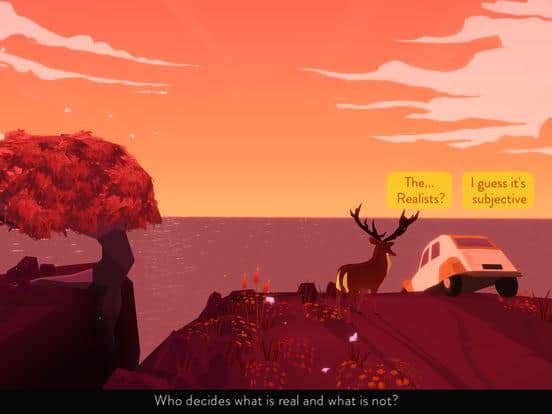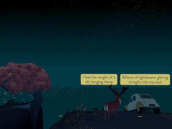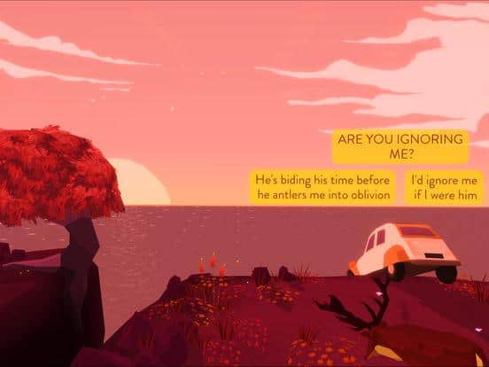 Gürültüden Uzak – tek bir sahneden oluşan iOS için etkileşimli bir macera oyunudur. Bu oyunda üç ana karakter bulunmaktadır: ilki, bir uçurumun kenarında asılı duran bir arabada oturan bir kız, ikincisi bir filozof geyik ve üçüncüsü doğa anadır. Bu oyunda ana görev, kızın geyikle diyalog kurmasına yardımcı olmaktır, ta ki oyun sona erene kadar. Oyunun ana amacı, geyikten insan hakkında heyecan verici hikayeler öğrenmek ve onun içindeki durumu keşfetmektir. Oyun, oyunculara minimalist grafikler, günün saatinin değişimi ve etkileyici atmosferik müzik sunarak keyif verecektir. Maceranıza hemen başlayın ve eşsiz hikayenin tadını çıkarın.