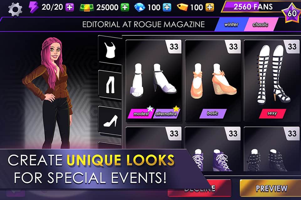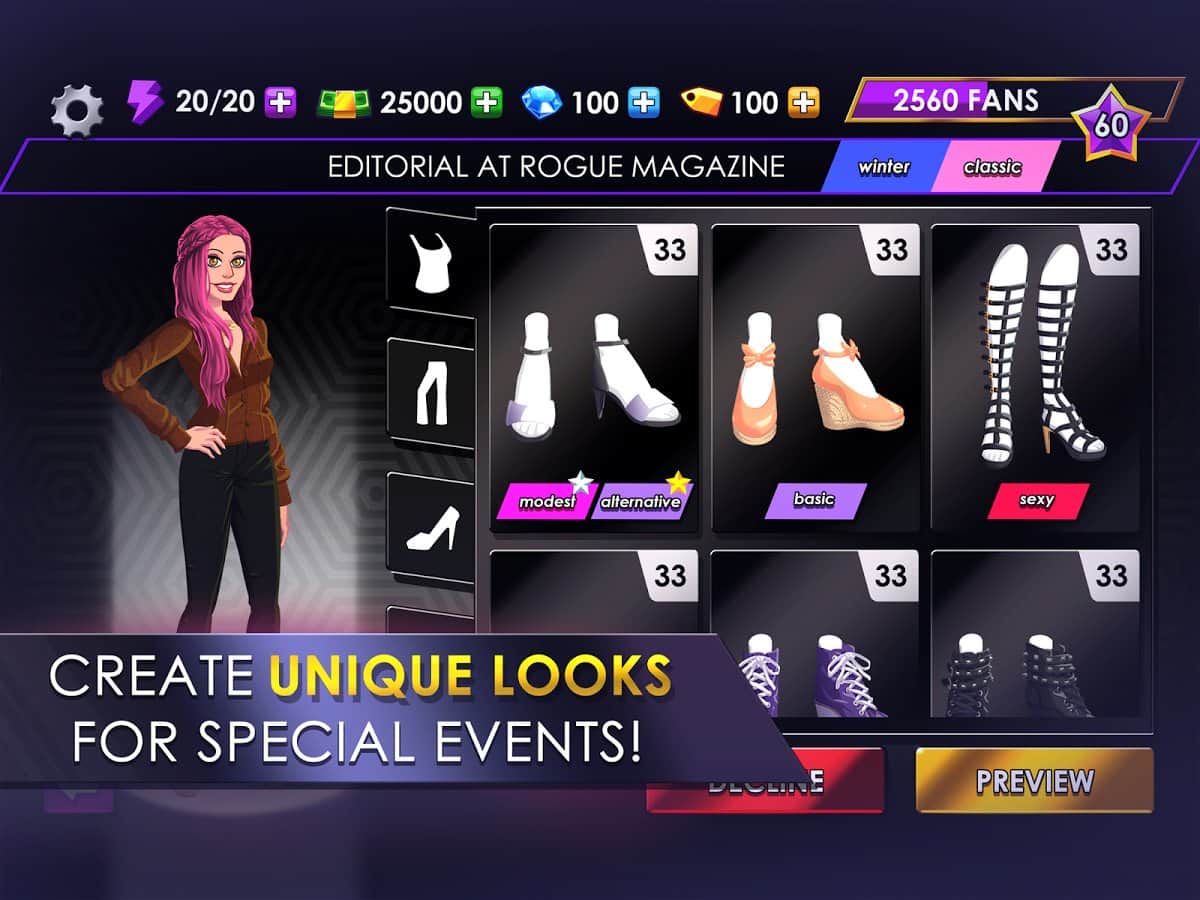 Moda Ateşi - Top Model Oyunu – bu Android oyununda ünlü bir stilist olun ve yeteneklerinizi ve mükemmel zevkinizi gösterin. Modeller üzerinde çeşitli stilleri ve renkleri bir araya getirerek her kız için eşsiz bir görünüm oluşturun. Farklı ülkelere seyahat edin ve etkinliğe göre modellerinizi dönüştürerek muhteşem giysi gösterilerine katılın. Deneyim kazanmak ve yeni görünümlerden ilham almak için moda gösterilerine, partilere, televizyon şovlarına ve diğer sosyal mekanlara gidin. Gardırobunuzda geniş bir giysi, aksesuar, ayakkabı ve çanta seçeneği olacak, ayrıca modelin yüz hatlarını ve saç stilini değiştirerek eşsiz bir görünüm oluşturabileceksiniz. Mini oyunlar oynayın ve yeni giysi parçaları kazanın.