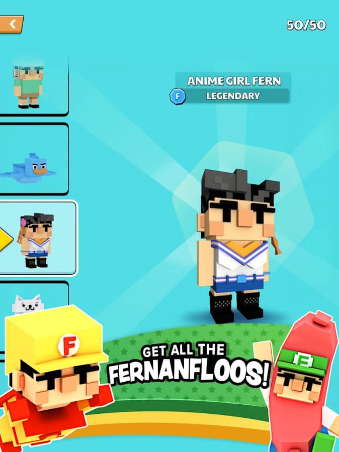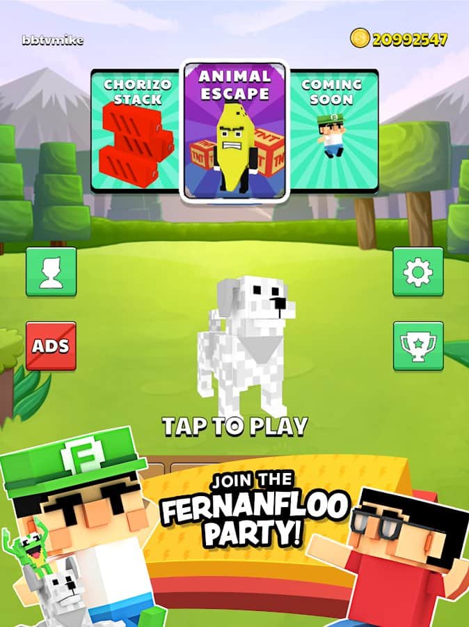 Fantastik Fernanfloo Partisi'nde buluşun! Kesinlikle sıkılmayacaksınız, çünkü heyecan verici mini oyunlarınız var! Onun ekibindeki tüm karakterleri toplayın (köpek, kurbağa, muz, ninja, kuş, kedi, ayı, kız, domuz, süper kahraman, sosis, çalışkan öğrenci) ve gerçek bir yolculuğa çıkın. Uçan bloklarda sonsuzca zıplayın ve onları üst üste koyarak göğe mümkün olduğunca yükseğe ulaşın, uzun yolda koşun ve engelleri hızla yanından geçerken hızlıca tepki verin ya da ek fırsatlar kullanın.