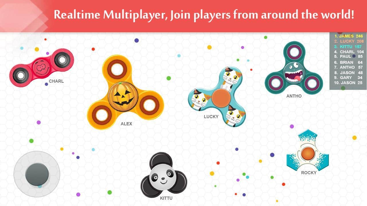 Fidget Spinner .io Oyunu – Android için heyecan verici çok oyunculu bir oyundur, burada spinner'ı kontrol edeceksiniz. Spinner'ınızı kontrol altına alın ve küçük bir oyun alanında hareket ederken yol boyunca renkli topları toplayarak boyutunuzu artırın. Oyunun zorluğu, büyük boyutlu spinner'ların sizi her yerde takip etmesidir ve eğer onlara dokunursanız, oyuna yeniden başlayacaksınız. Daha küçük boyutta olan rakiplerinizin spinner'larını yutun ve puan kazanın. Oyunun tüm görevlerini tamamlayın ve rakiplerinizin önünde bir avantaj elde etmek için mümkün olduğunca fazla bonus toplayın.