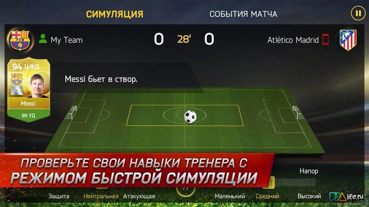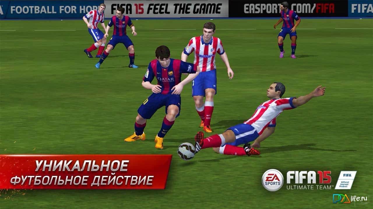 FIFA 15 Ultimate Team – EA SPORTS tarafından Android için geliştirilmiş harika bir futbol simülatörüdür. Oyunda beş yüzün üzerinde lisanslı takımdan yaklaşık on bin futbolcu bulunmaktadır! İngiltere Premier Ligi'nden Almanya Bundesliga'sına ve diğer dünya şampiyonalarına kadar. Dünyanın en ünlü 30 stadyumu. Harika grafikler, oyuncunun bir futbol maçının atmosferine dalmasına yardımcı olacak. Ayrıca oyuncuya yeni Quick Simulations modunda antrenörlük becerilerini test etme imkanı sunulmaktadır.