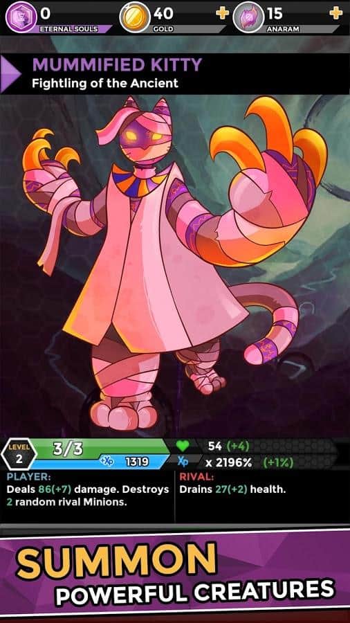 Fightlings - açık dünya ile dinamik PVP savaşları olan bir koleksiyon kart oyunudur. Bu tür için alışılmadık bir çözüm, açık dünyayı keşfederken mevsime bağlı olarak değişen çeşitli kaynakları toplamanız gerektiğidir. Altı farklı fraksiyona ait 30'dan fazla klana katılma fırsatınız olacak ve mevcut karakter sayısını saymak imkansız. Harika çizim grafik, oyunun genel atmosferiyle mükemmel bir uyum içindedir. Geri kalan her şeyde Fightlings klasik bir KKO'dur.