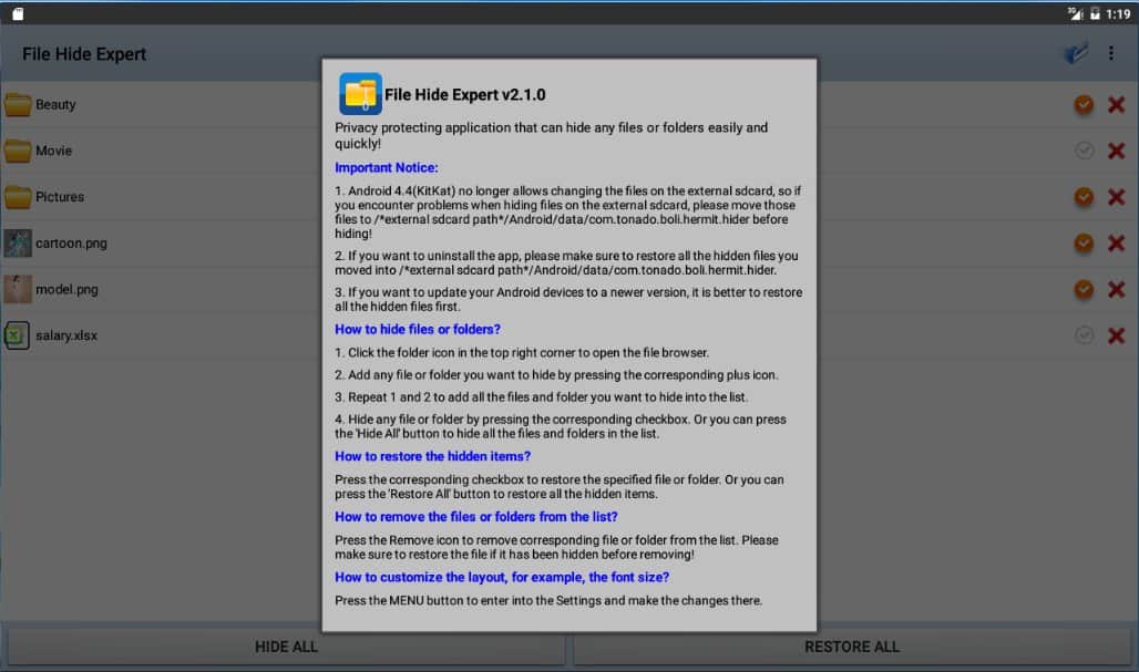 Dosya Gizle Pro – geliştiricileri Emily Smith olan Android için harika bir uygulama, dosyalarda ve klasörlerdeki ihtiyacınız olan bilgiyi meraklı gözlerden gizlemenizi sağlar.
