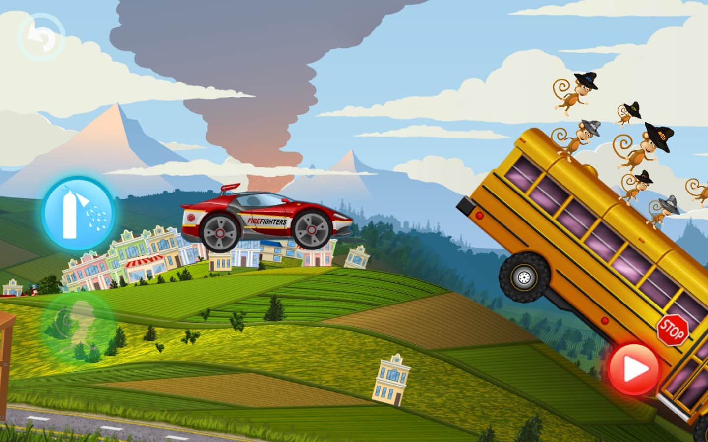 Çocuklar için İtfaiyeciler Yarışı – çocuklar için Android'de eğlenceli bir oyun, burada itfaiye aracını yönetecekler. Büyük şehrin sokaklarında itfaiye arabanızı sürün ve yangını söndürmek için ilk gelen olun. İtfaiye aracınızı yönetin ve yolunuzdaki tüm engellerden kaçının, yüksek yamaçlara tırmanın ve engellerle ve diğer araçlarla çarpışmalardan kaçının. Yangın noktasına mümkün olan en kısa sürede ulaşın, çünkü bu, yangını kendi başınıza söndürebilecek misiniz yoksa hayvan dostlarınızı çağırmak zorunda mı kalacaksınız, buna bağlıdır. Yol boyunca size yardımcı olacak sevimli maymunları çağırın ve yangını söndürün. İlginç görevleri yerine getirin ve yeni itfaiye araçlarının kilidini açın.