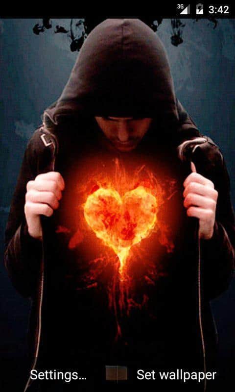 Ateş Kalp Canlı Duvar Kağıdı – genç bir adamın herkesin gözünden saklayacakmış gibi ceketinin altında sakladığı ateşli atan kalp şeklinde şık canlı duvar kağıtları. Ayarlarda animasyon hızını istediğiniz gibi ayarlayabilirsiniz.