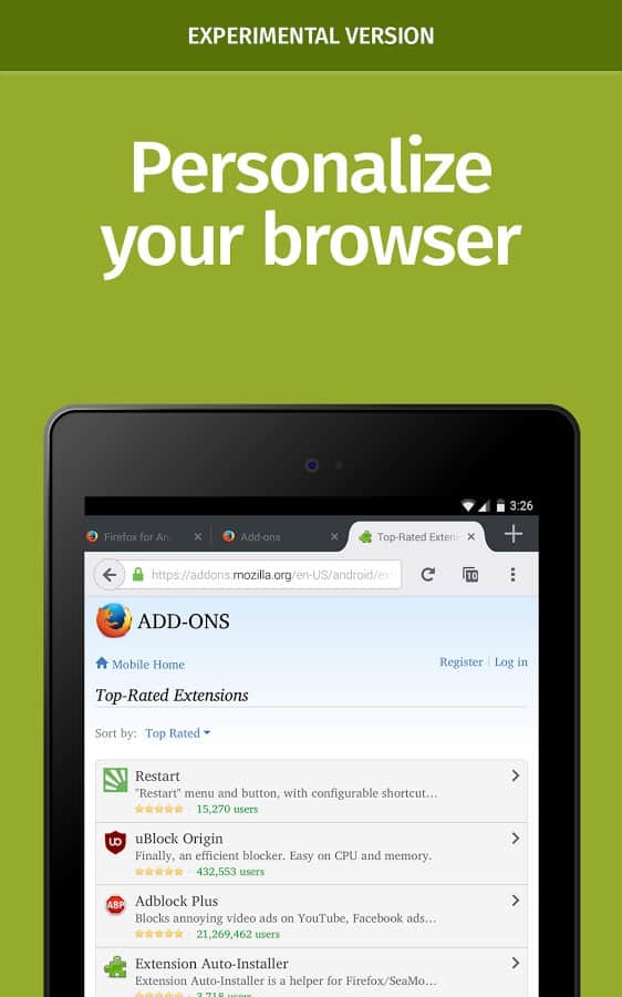 Yorumlar ile Firefox Nightly for Developers üzerinde Android
