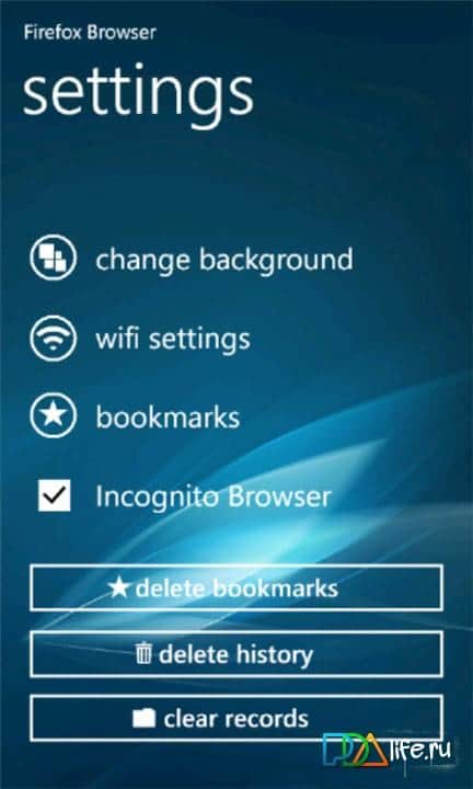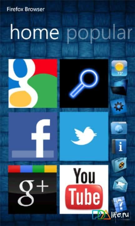 Sizin için Windows Phone 7'de Firefox'u sunuyoruz! En kullanışlı ve hızlı bir şekilde özelleştirilebilen web tarayıcısı artık cihazınız için de mevcut. Bununla, ziyaret ettiğiniz sayfaların geçmişini kolayca kaydedebilir, web sitelerine yer imleri ekleyebilir ve farklı kullanıcı arka planları kullanabilirsiniz. Ücretsiz web tarayıcısını aşağıdaki bağlantıdan indirebilirsiniz!