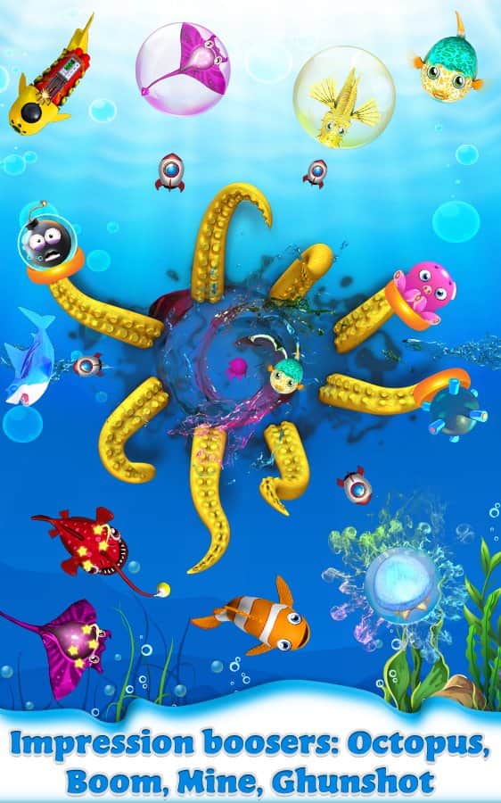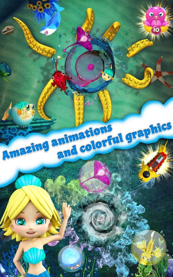 Ariel'in yardımına ihtiyacı var, çünkü evini kötü bir köpek balığı ve onun balıkları tehdit ediyor, parlayan ve değerli inciyi almak için. Ancak Balık Patlatma'da masalsı kurallar geçerlidir, burada Kötülük kazanamaz. Bunu kanıtlamak oyuncuya düşüyor, güzel Ariel'i koruyarak okyanustaki yaşam hakkında birçok keşif yapacak. Şu anda bu renkli macera 60 seviyeden oluşuyor, ancak ASQTeam çalışmalara devam edip mevcut seviyelerin listesini genişletmeyi vaat ediyor. Şu an için oyuncu dört oyun modu kullanabilir ve sonuçlarını dünyanın dört bir yanında kullanıcıların oyun etkinliğiyle karşılaştırabilir.
